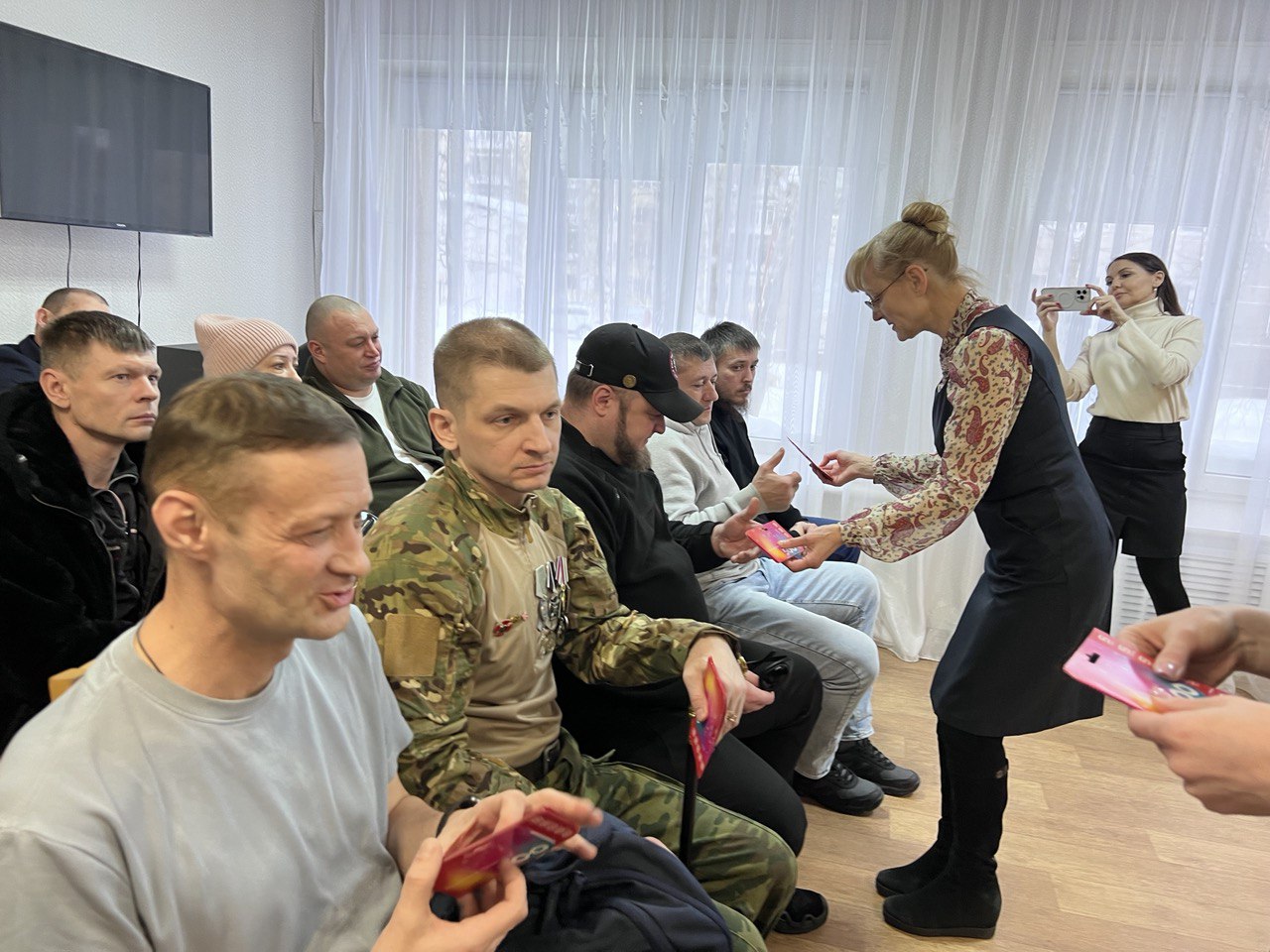Поскольку большинство ветеранов СВО имеют ранения, для вручения подарков нотариусы выезжали к ним домой, на работу, в реабилитационные центры. В крупных городах округа праздничные мероприятия были организованы в местных отделениях Государственного фонда "Защитники Отечества", в учреждениях системы социальной защиты населения.