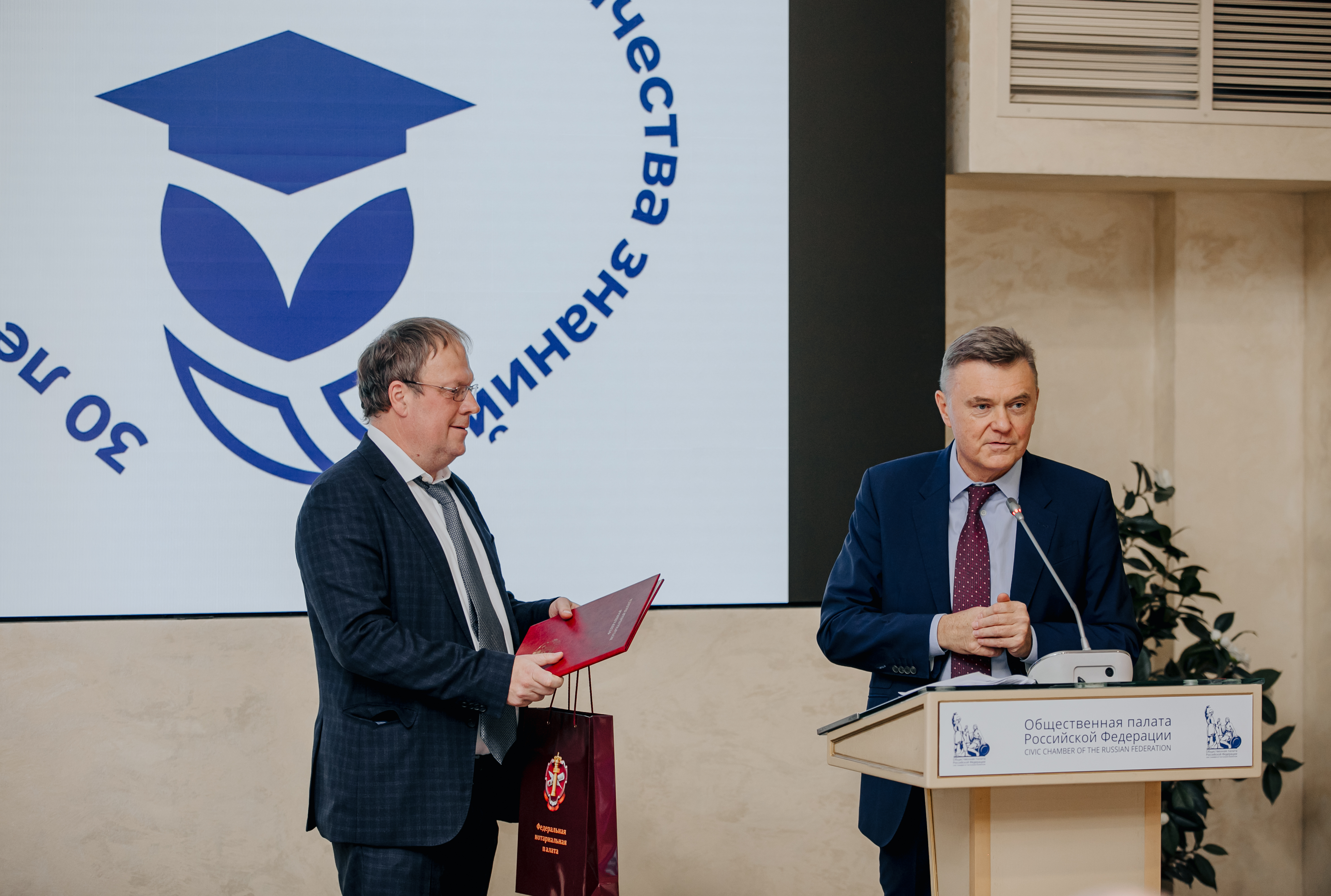 23 октября в рамках Международного Грибоедовского форума ректор Московского университета имени А.С. Грибоедова Владислав Гриб и президент Федеральной нотариальной палаты Константин Корсик подписали соглашение, которое предполагает взаимодействие ФНП и высшего учебного заведения в области развития кадрового и научного потенциала. Мероприятие проходило на площадке Общественной палаты РФ и было посвящено 30-летию со дня основания университета.