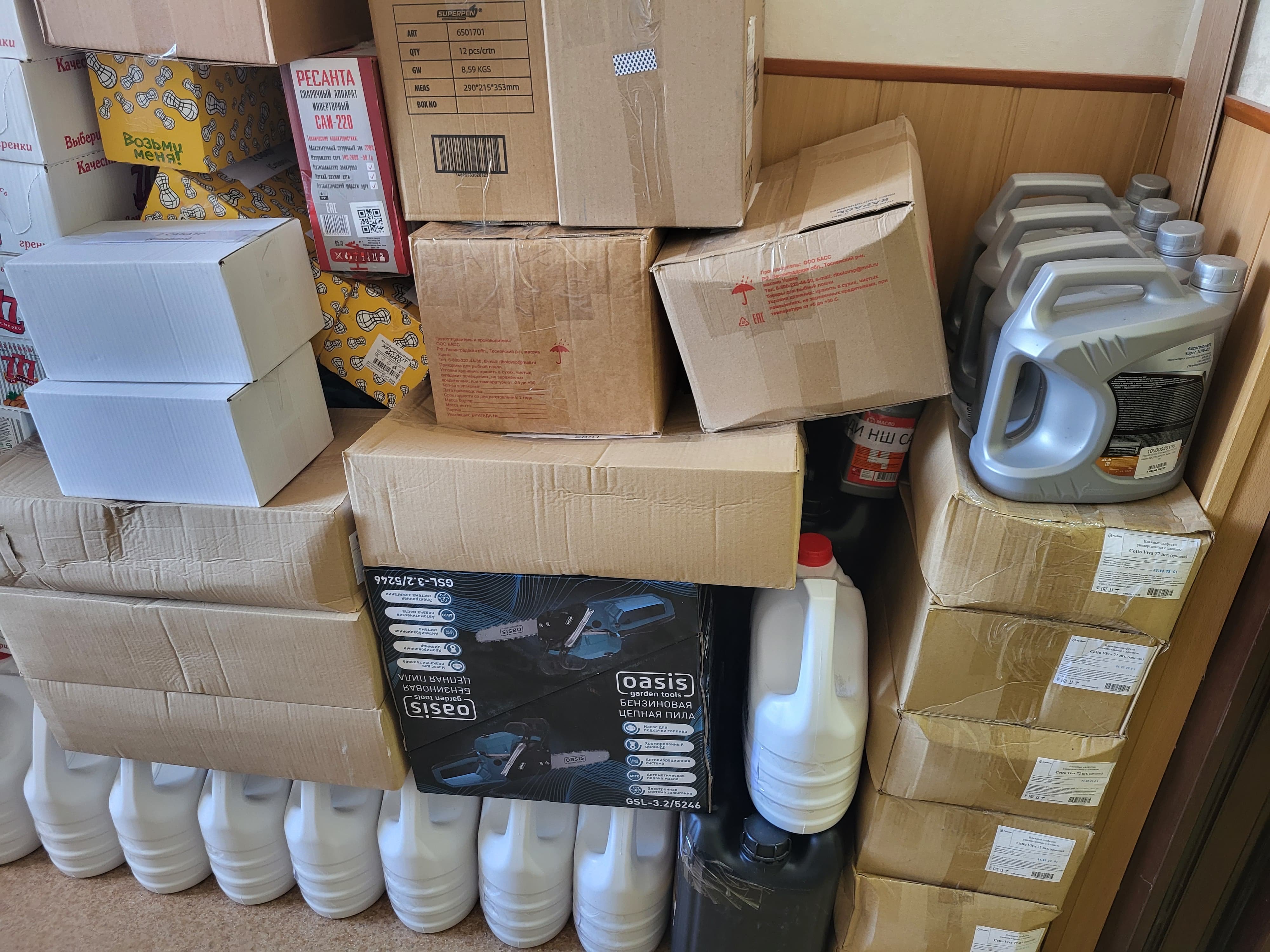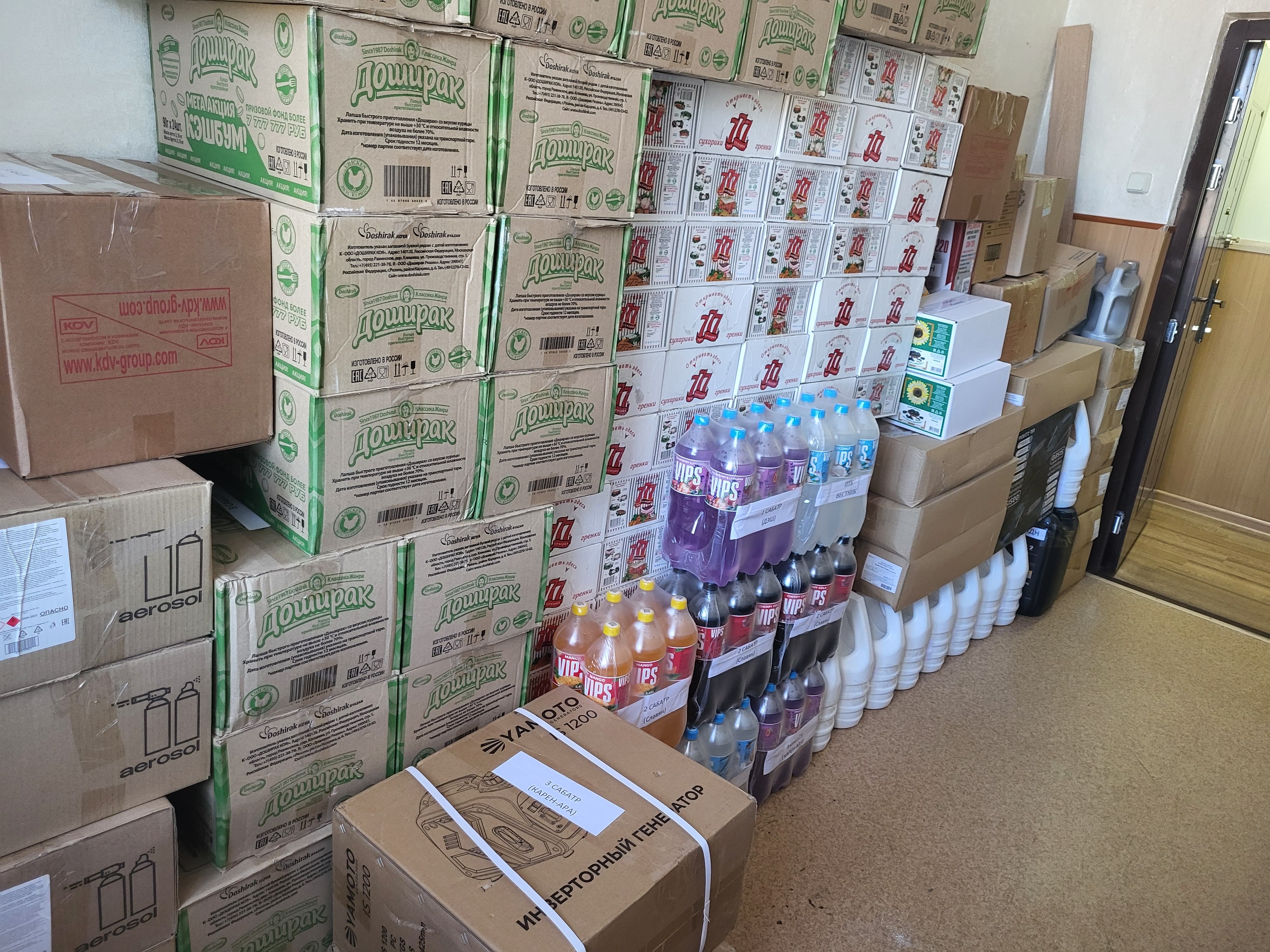 Для военнослужащих были приобретены продукты питания, сладости, напитки, а также оборудование для обустройства быта - тепловые пушки, генераторы, бензопилы, моторные масла, утеплитель.
