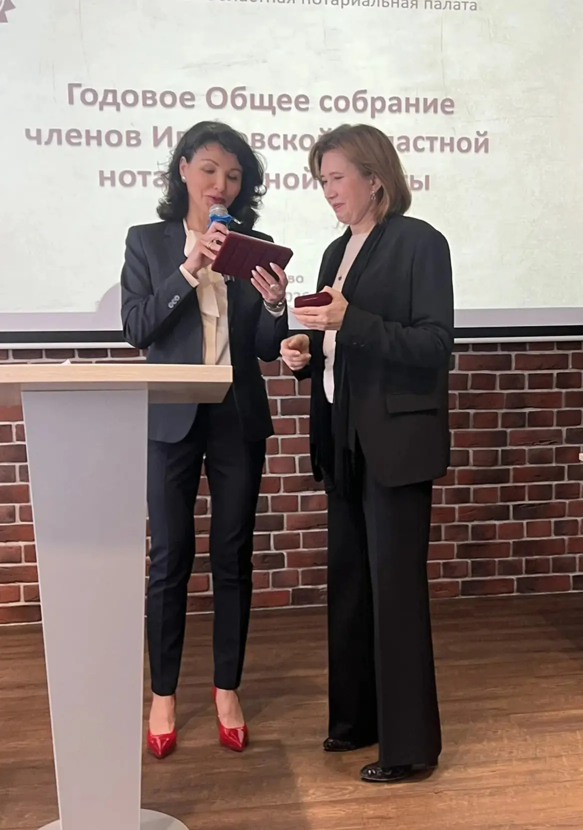 В собрании приняли участие начальник Управления Министерства юстиции РФ по Ивановской области Наталья Кузьмина и начальник отдела по вопросам адвокатуры, нотариата, государственной регистрации актов гражданского состояния Елена Бевз.