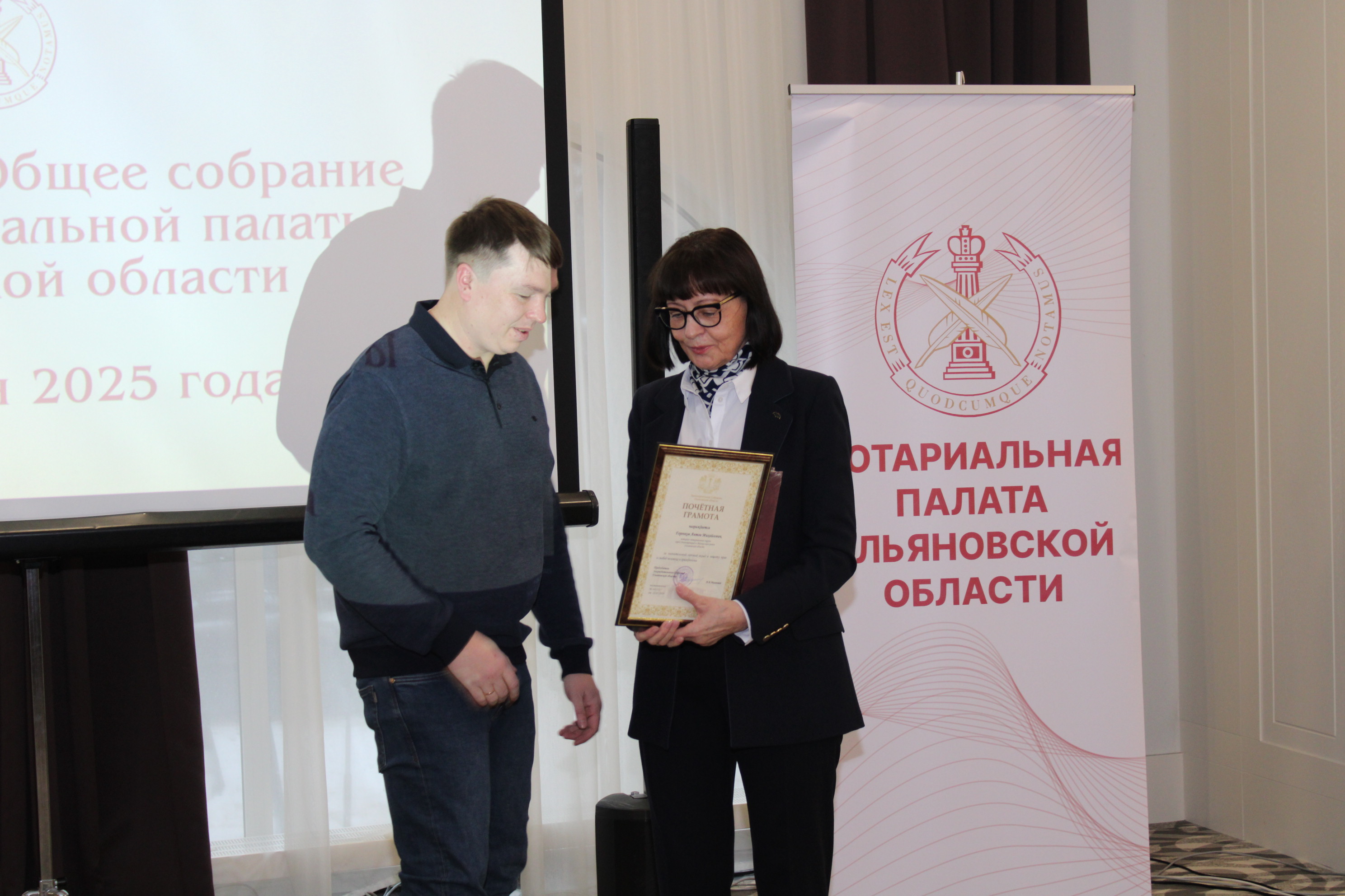 В мероприятии принимала участие депутат Законодательного собрания Ульяновской области, руководитель Региональной общественной приемной партии «Единая Россия» Марина Беспалова. Она вручила почетные грамоты Законодательного собрания нотариусу города Димитровграда Антону Горенкову и нотариусу Барышского района Оксане Вахляевой, поблагодарив членов НПУО за активную работу по правовому просвещению граждан. Отдельно был отмечен вклад нотариального сообщества в оказание помощи участникам специальной военной операции и членам их семей.