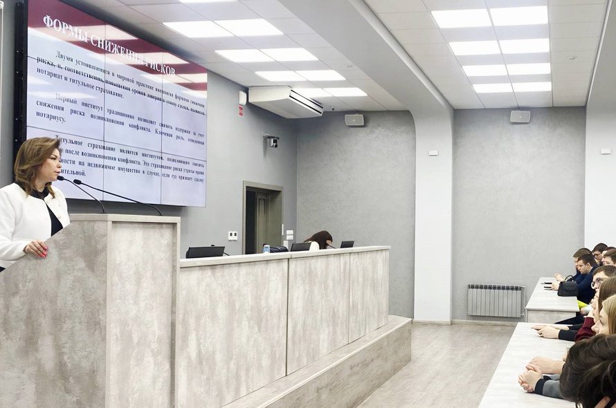Елена Харитонова прочла лекцию на тему «Преимущества и недостатки титульного страхования как института минимизации рисков в нотариате». Она затронула следующие вопросы: правовые риски признания сделок недействительными; сравнительный правовой анализ функций государственного регистратора прав на недвижимость, нотариуса и страховых компаний для минимизации рисков и снижения негативных правовых последствий, в случае признания сделки недействительной; роль государственного регистратора прав на недвижимость при проведении правовой экспертизы документов; роль нотариуса для обеспечения особой доказательственной силы действительности сделки и значительной минимизации рисков признания ее недействительной; роль титульного страхования как способа возмещения убытков при утрате титула.
