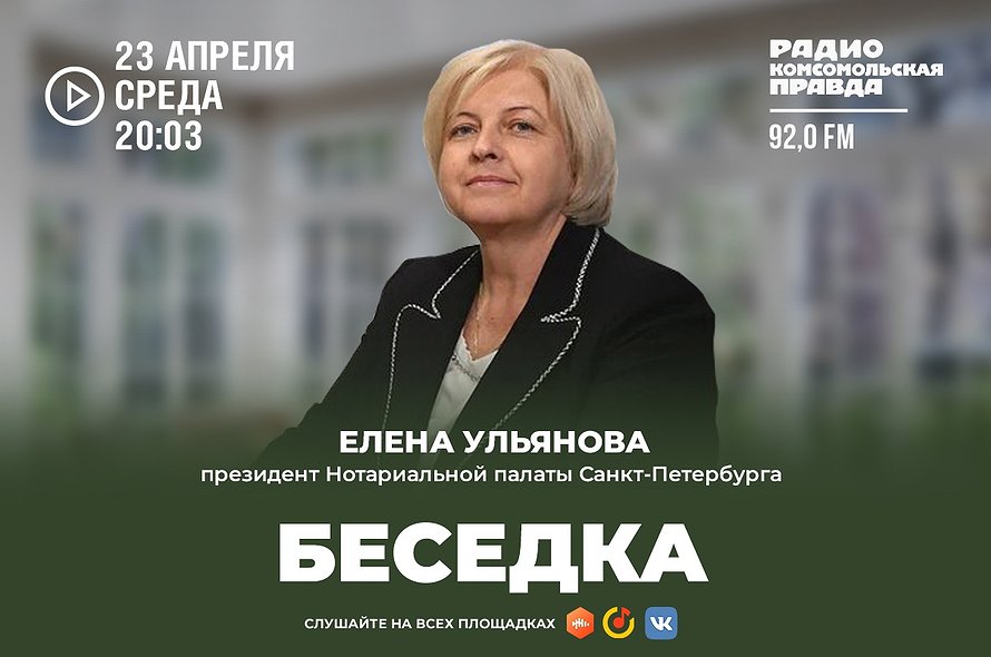 Президент Нотариальной палаты Санкт-Петербурга Елена Ульянова выступила в эфире радио «Комсомольская правда в Санкт-Петербурге». В программе «Беседка» она рассказала, как максимально обезопасить себя при продаже доли в коммунальной квартире.