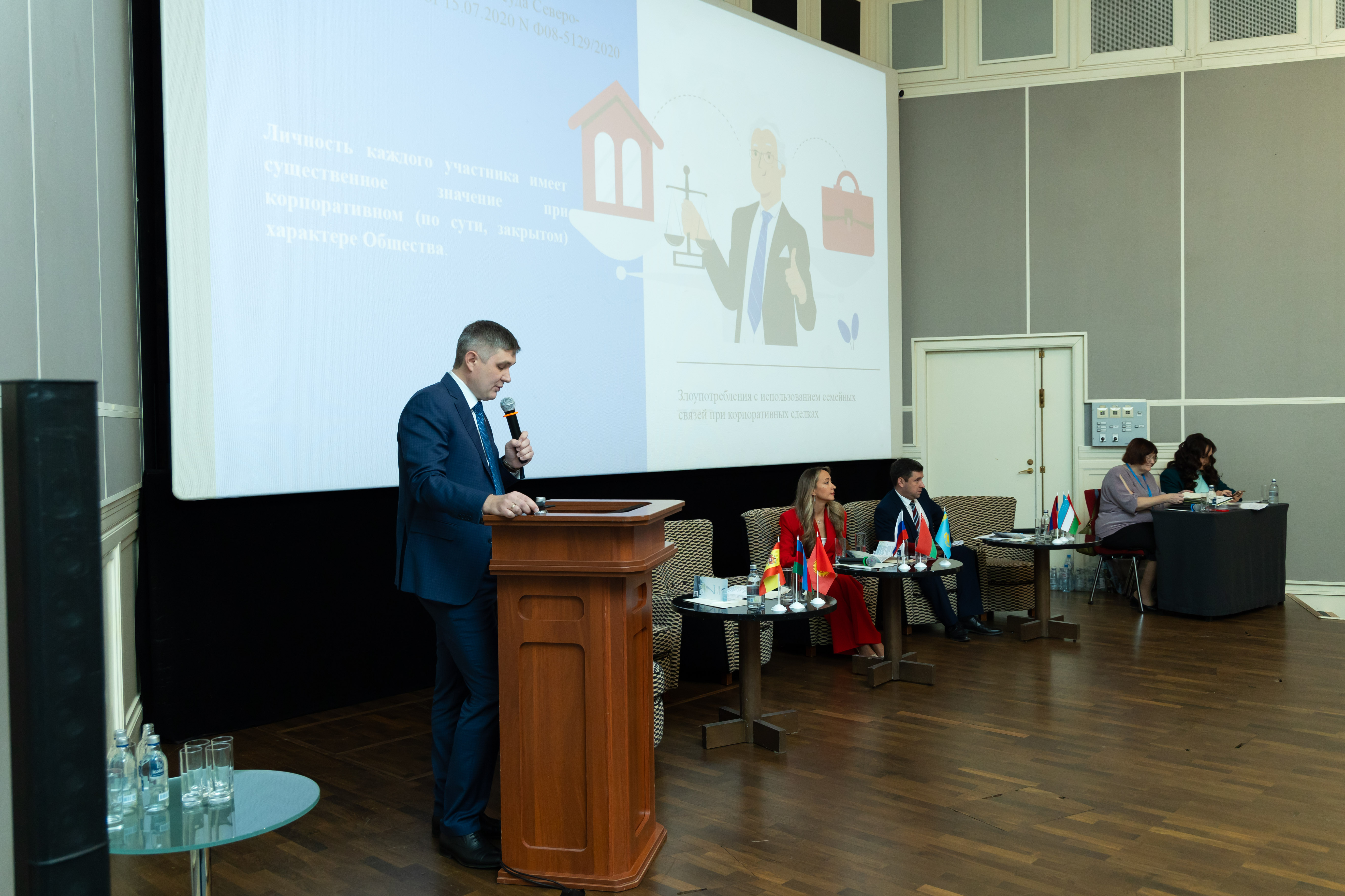 Еще один дискуссионный вопрос — соотношение семейного и корпоративного законодательства в регулировании имущественных отношений супругов. Именно ему был посвящен доклад нотариуса г. Москвы Юрия Кашурина.
