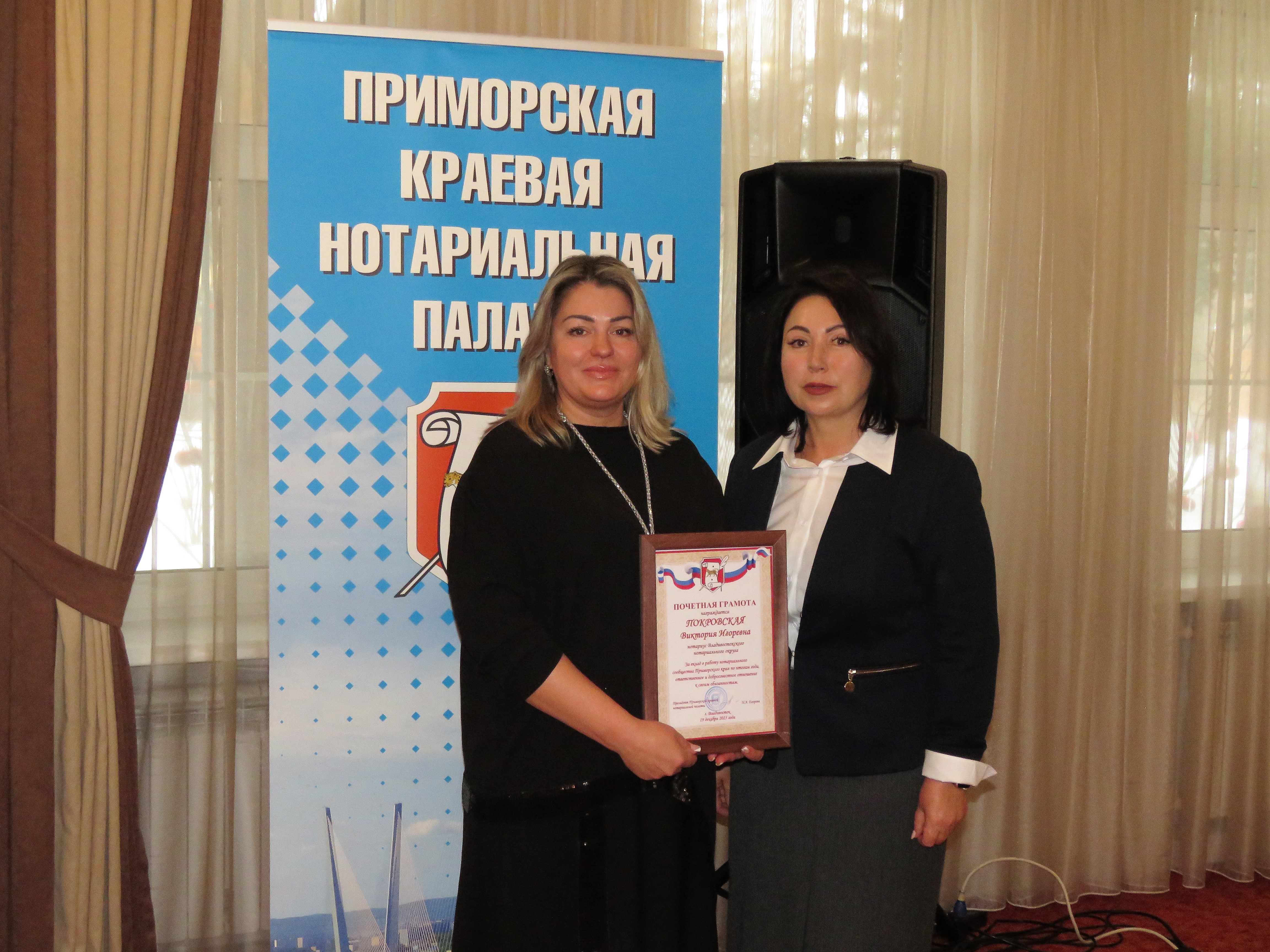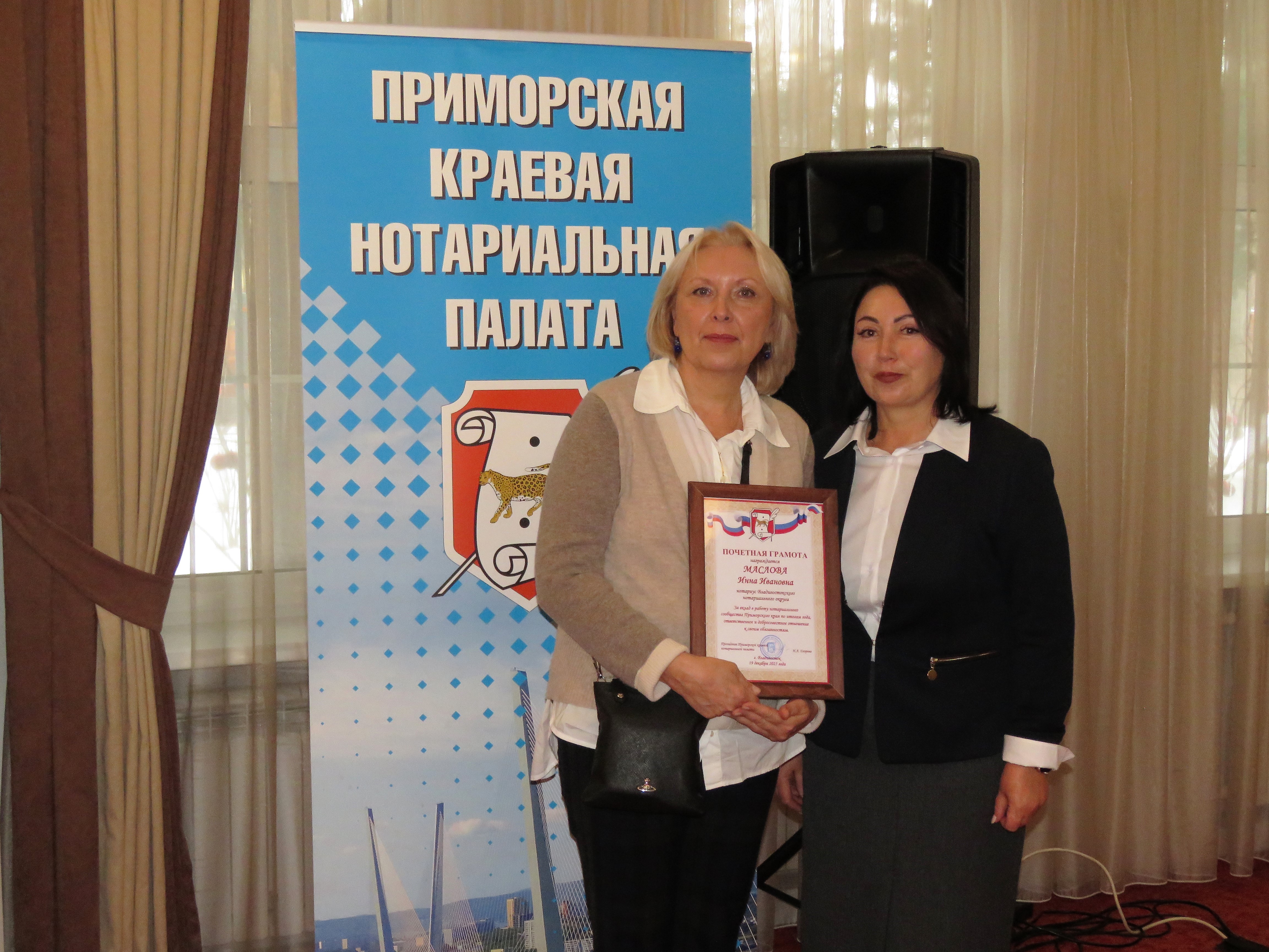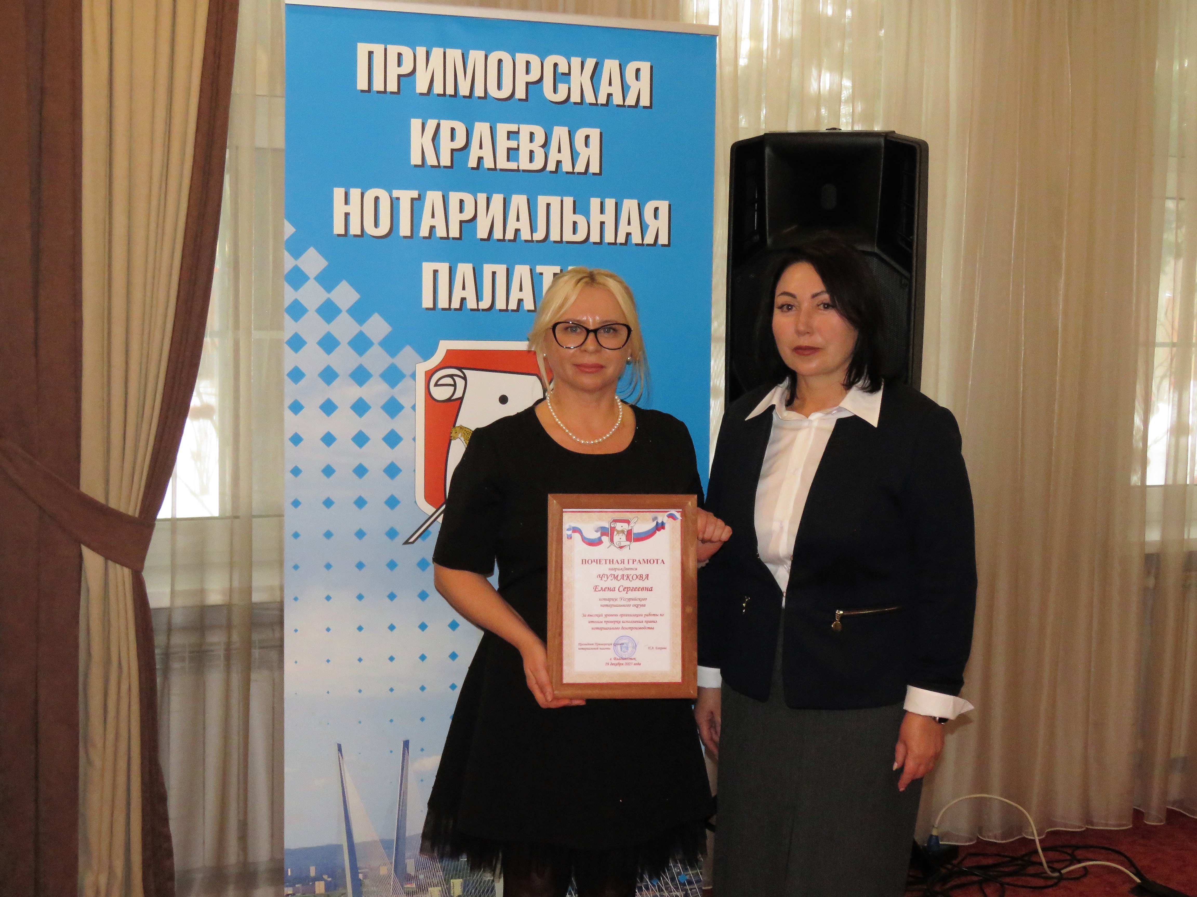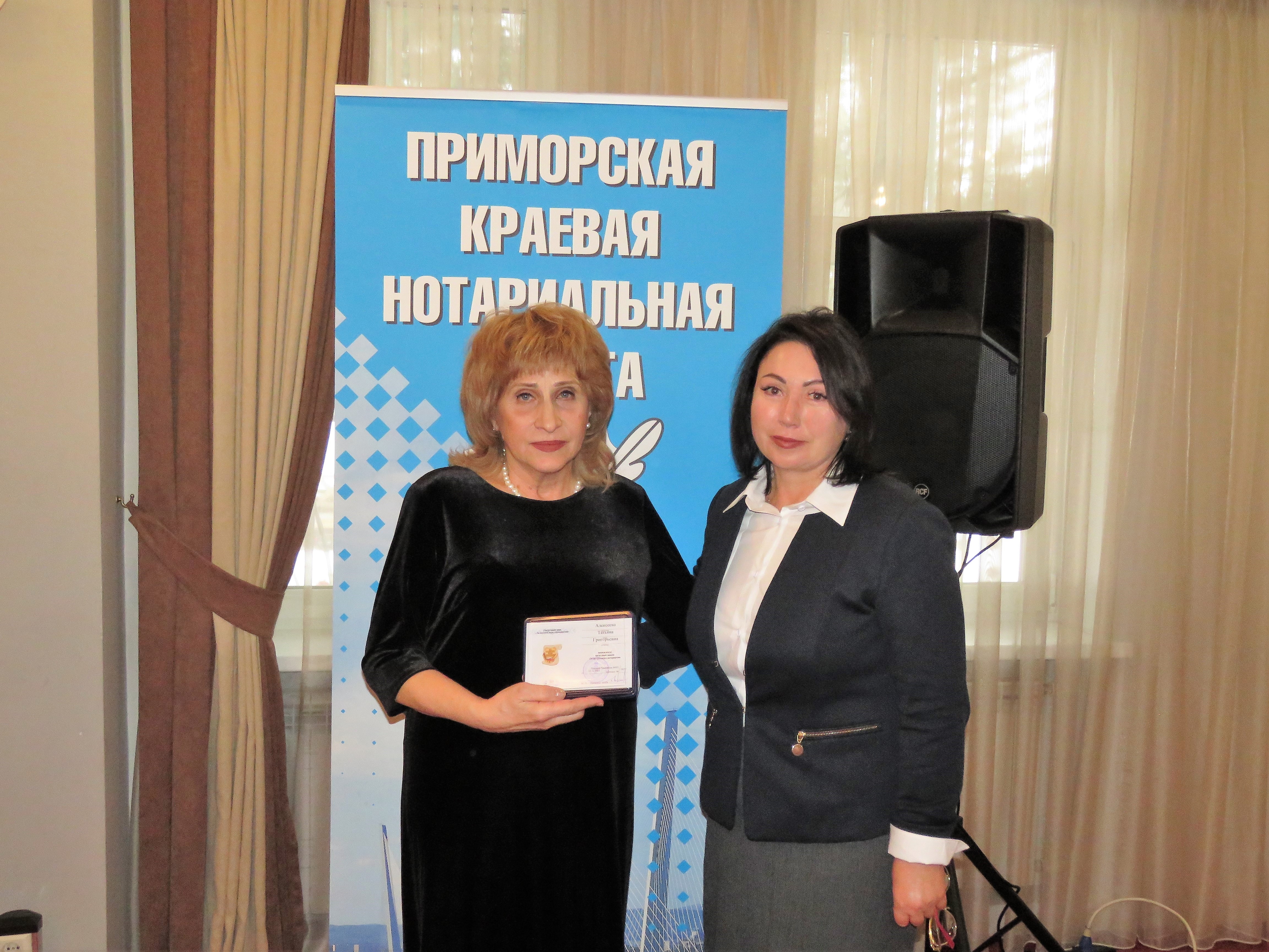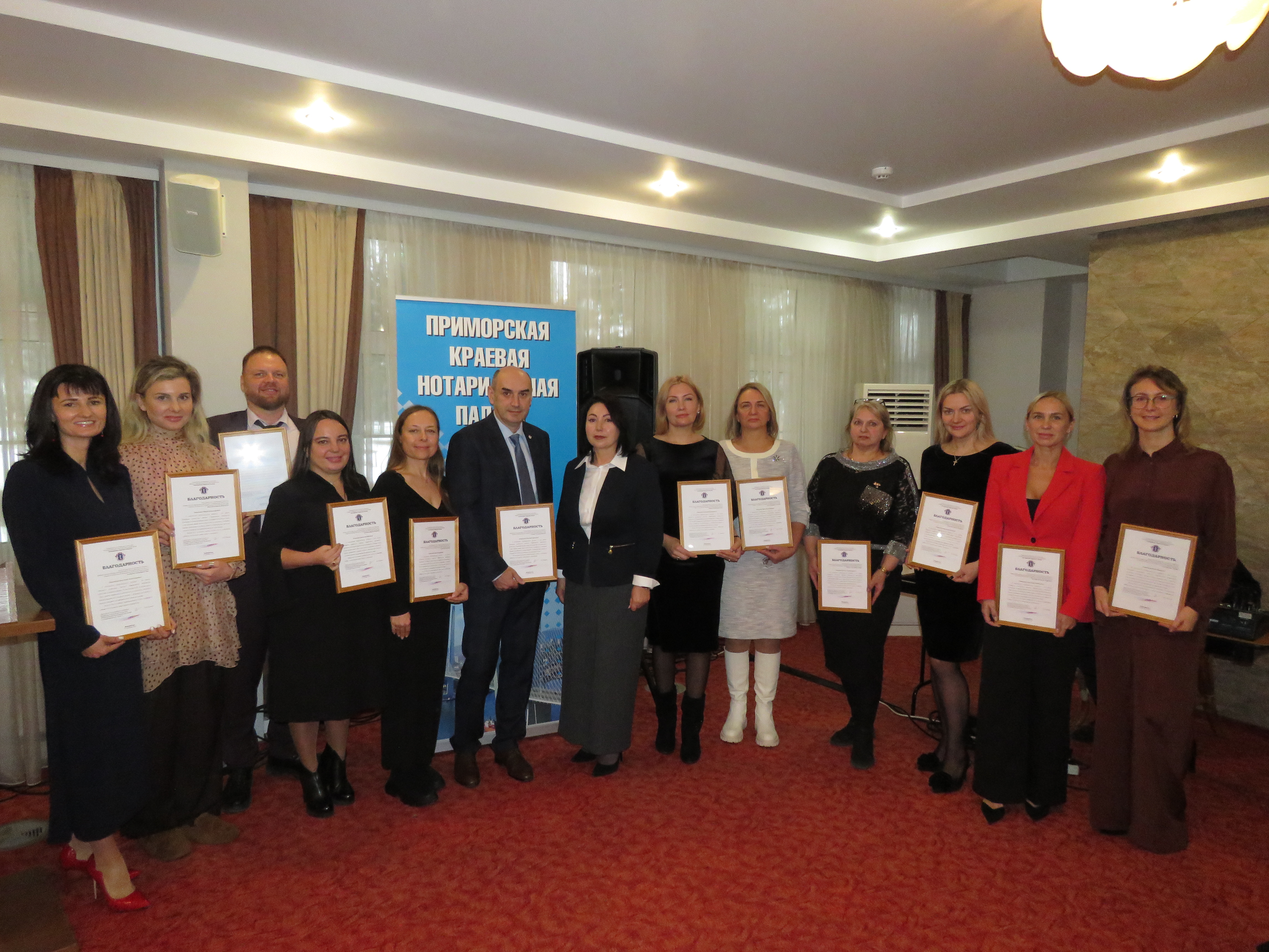 По окончании собрания, в соответствии с решением правления палаты ряд нотариусов края были отмечены наградами Федеральной нотариальной палаты, правительства Приморского края, Законодательного Собрания Приморского края и Приморской краевой нотариальной палаты. После официальной части собрания состоялся праздничный новогодний вечер.