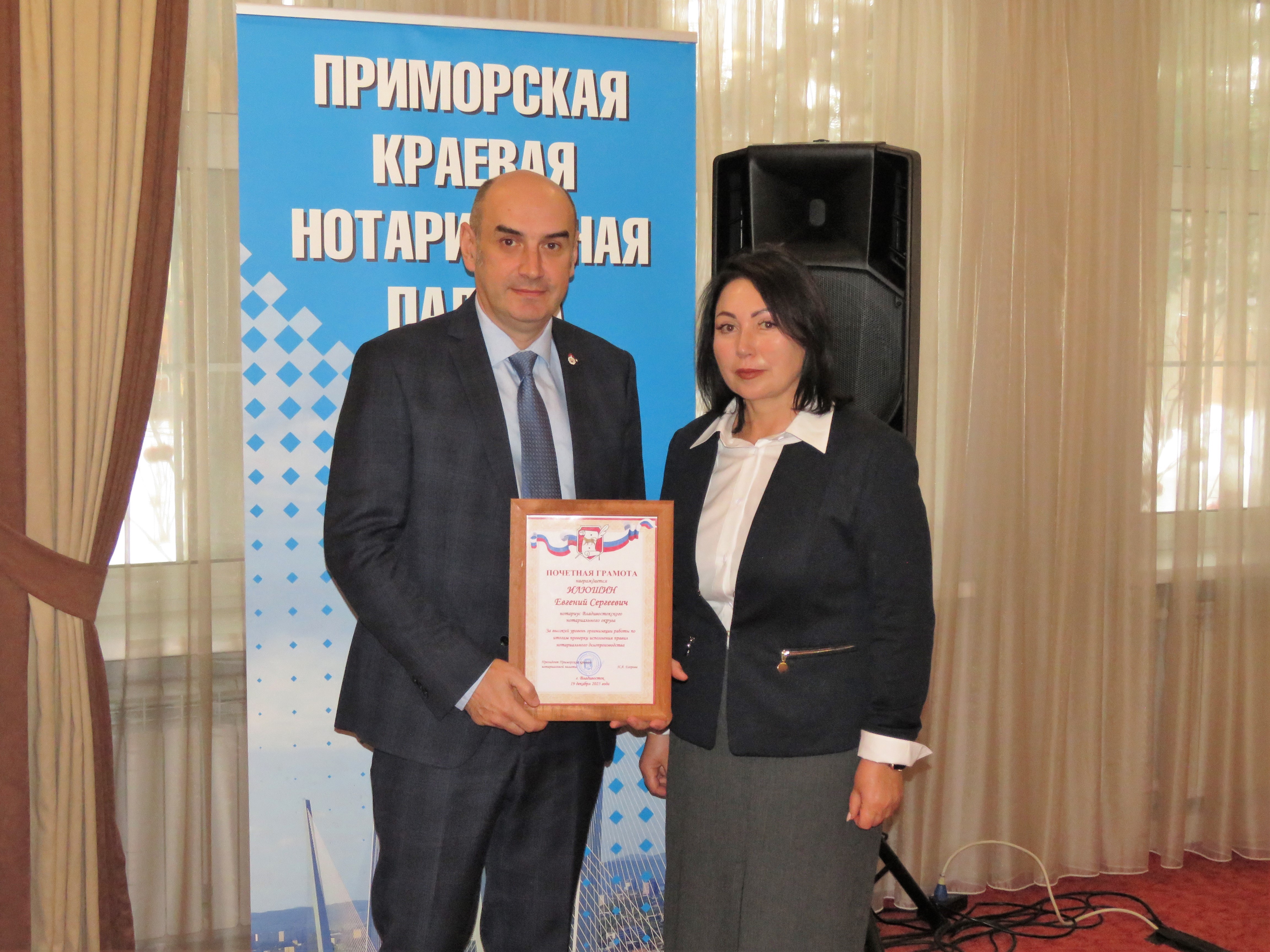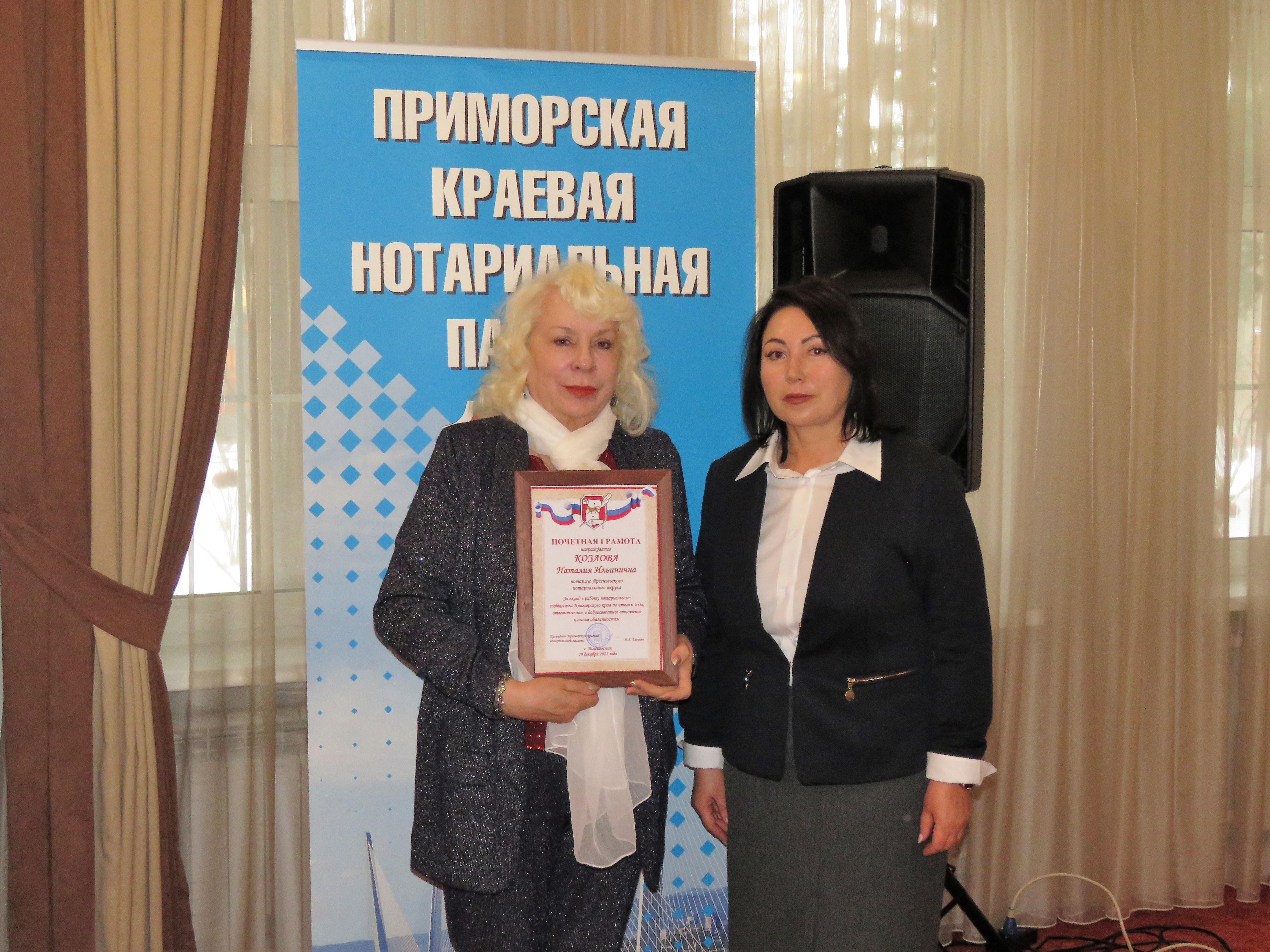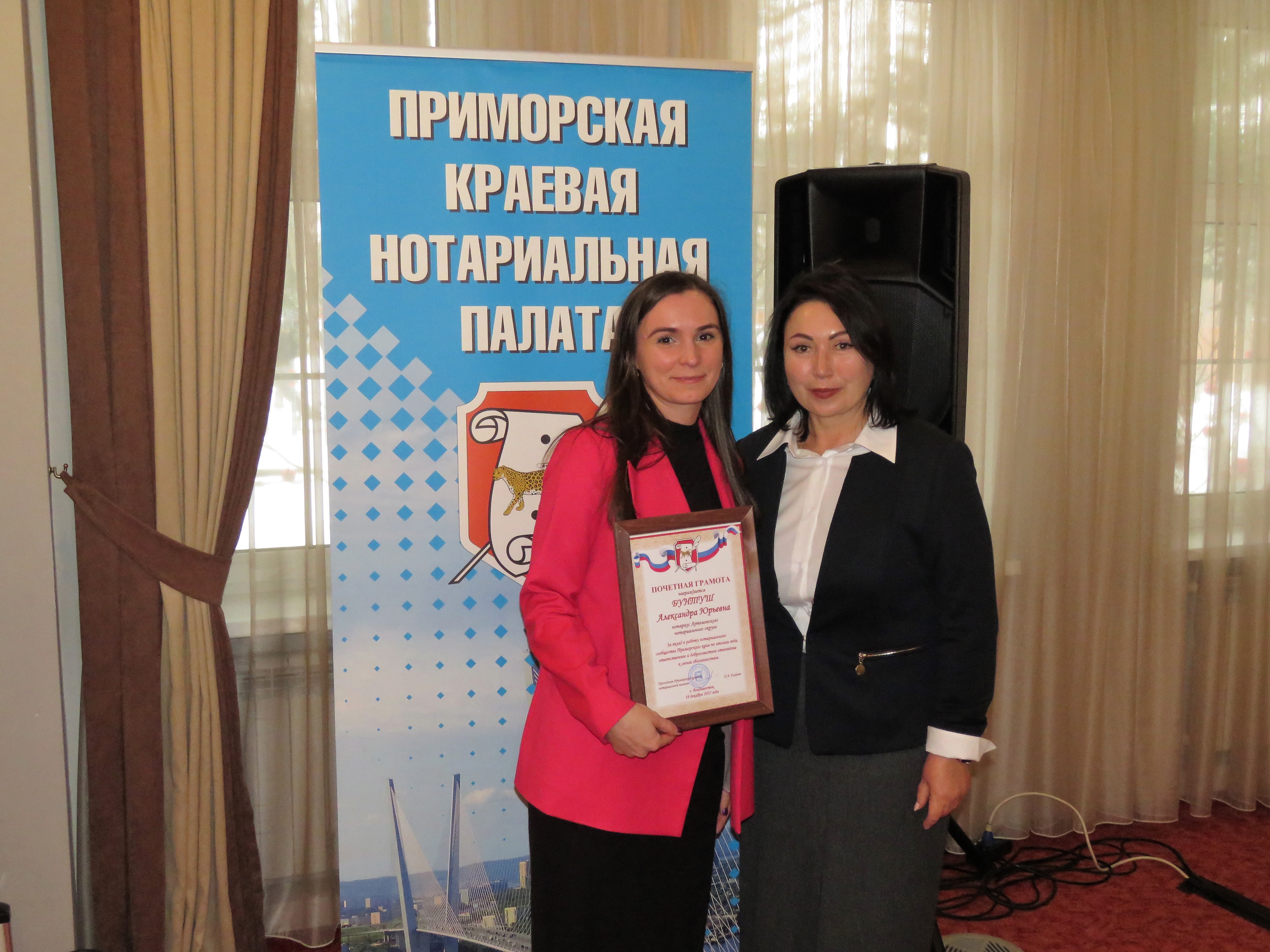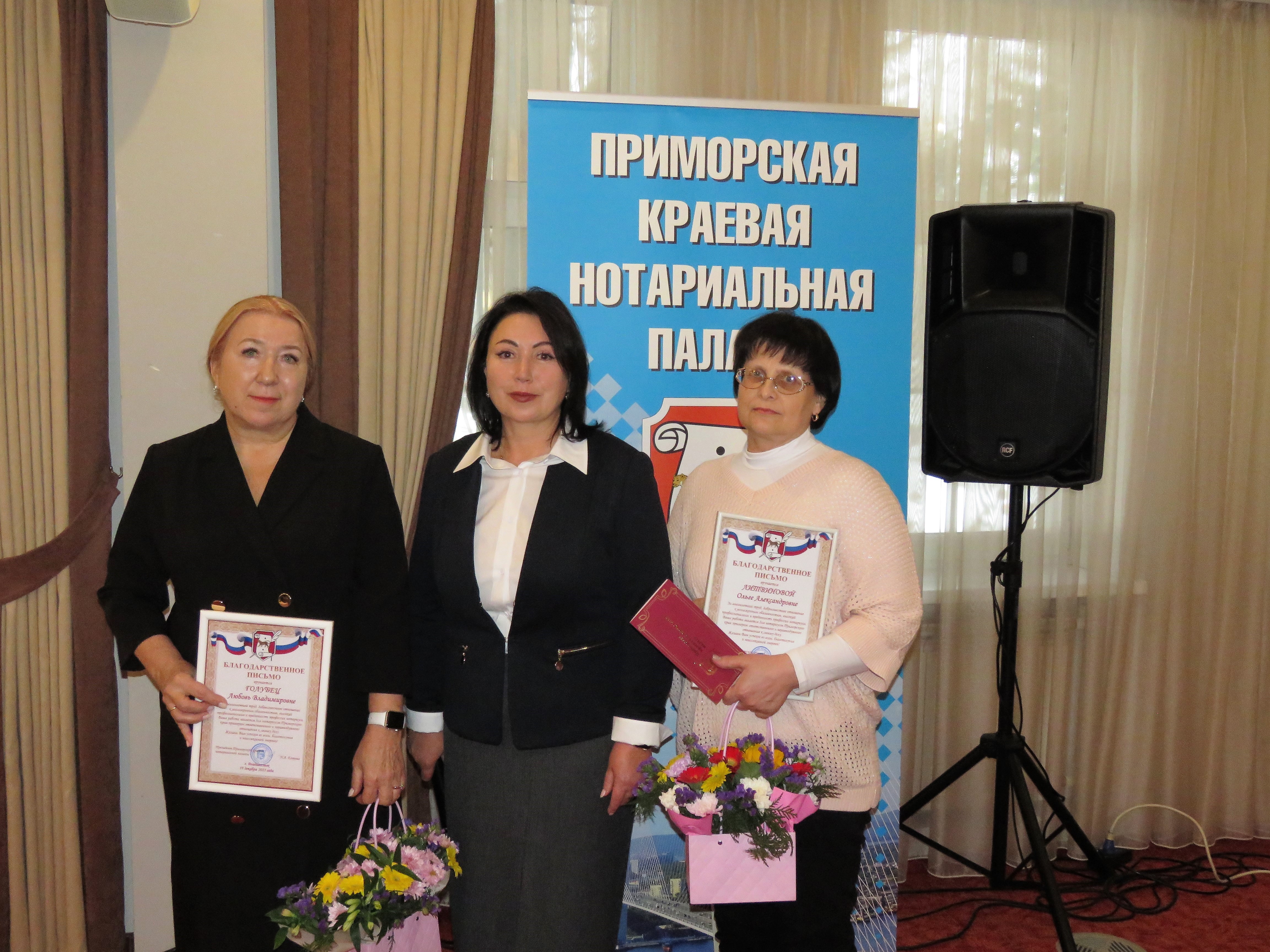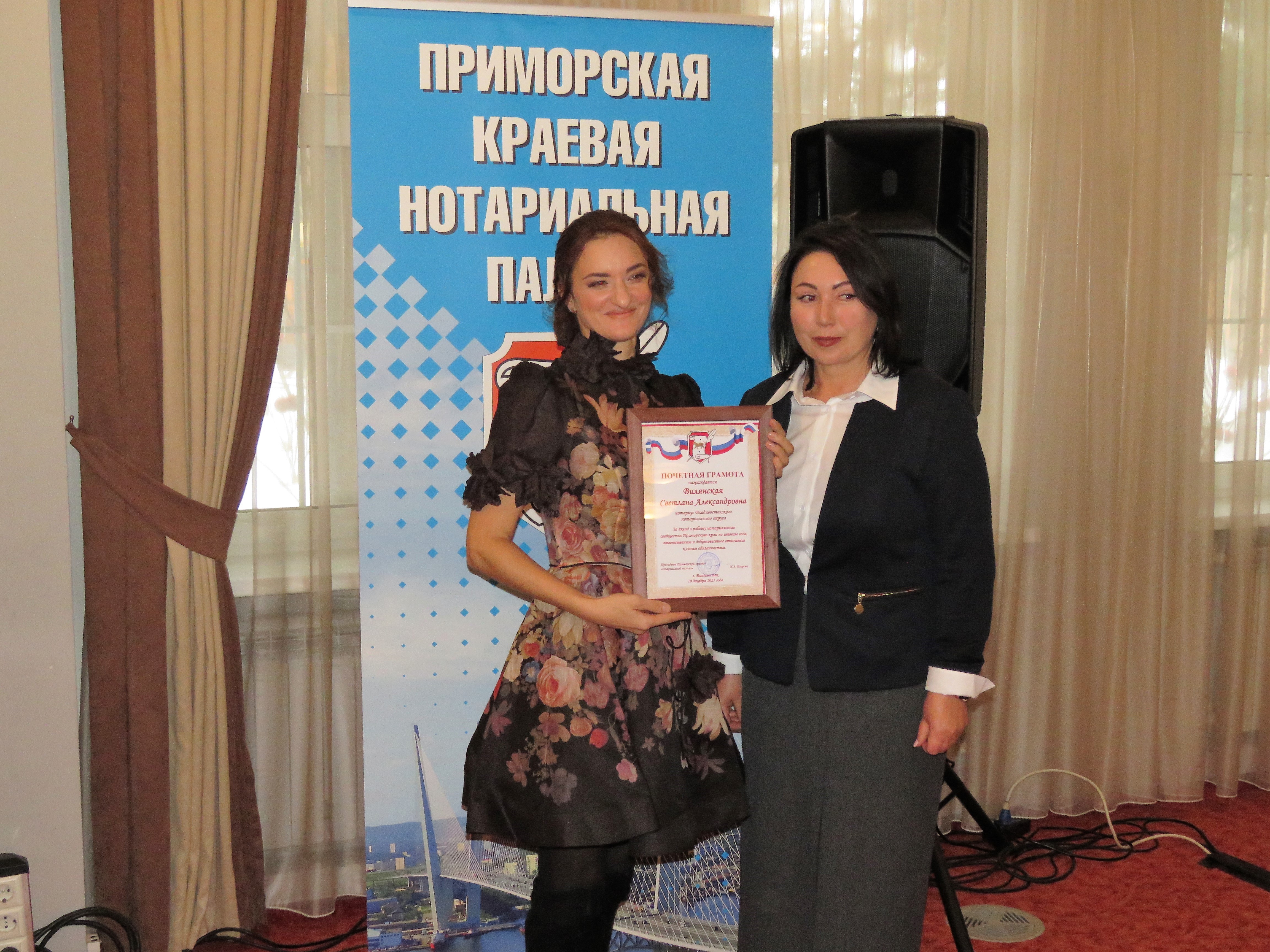 По окончании собрания, в соответствии с решением правления палаты ряд нотариусов края были отмечены наградами Федеральной нотариальной палаты, правительства Приморского края, Законодательного Собрания Приморского края и Приморской краевой нотариальной палаты. После официальной части собрания состоялся праздничный новогодний вечер.
