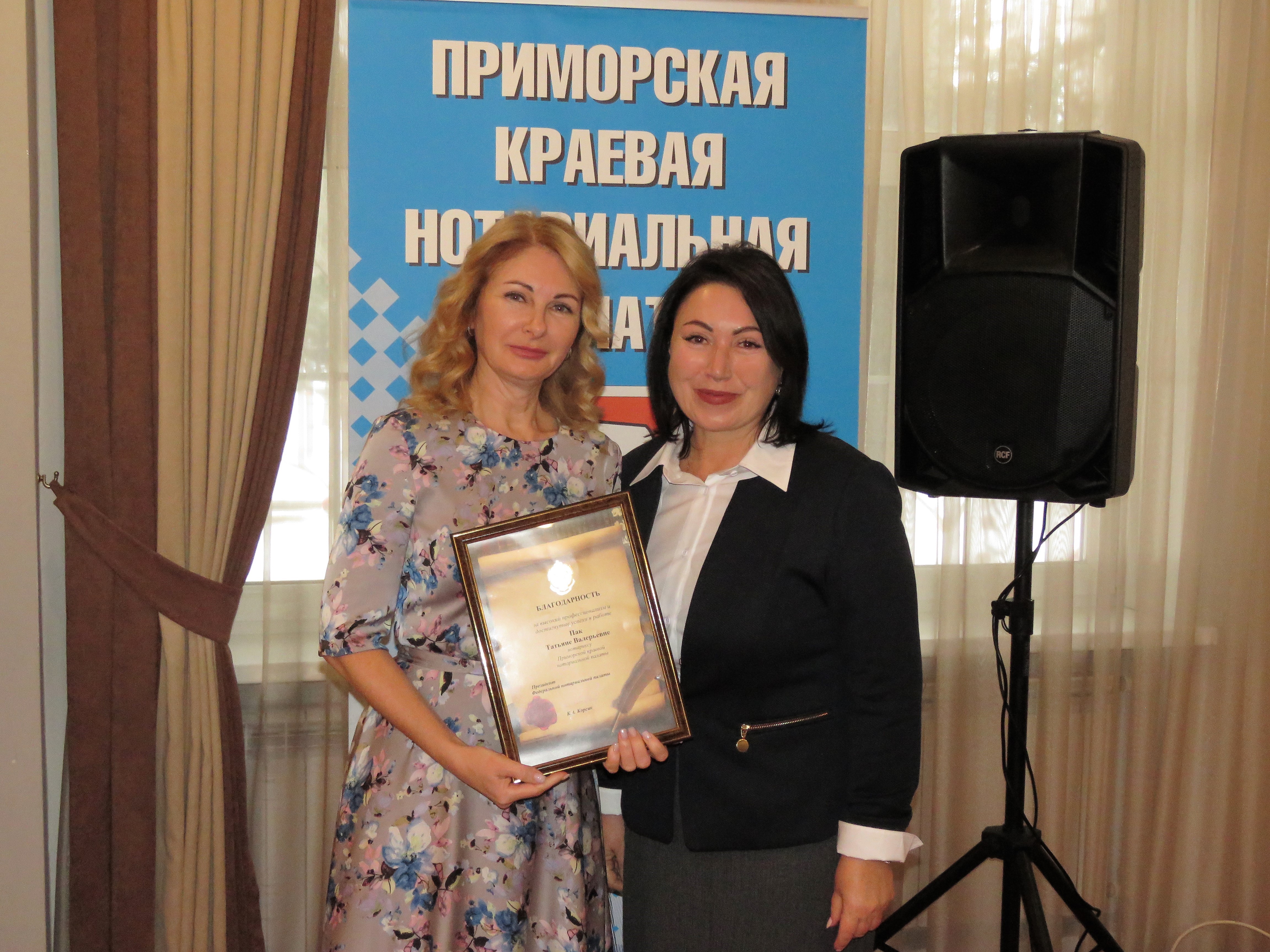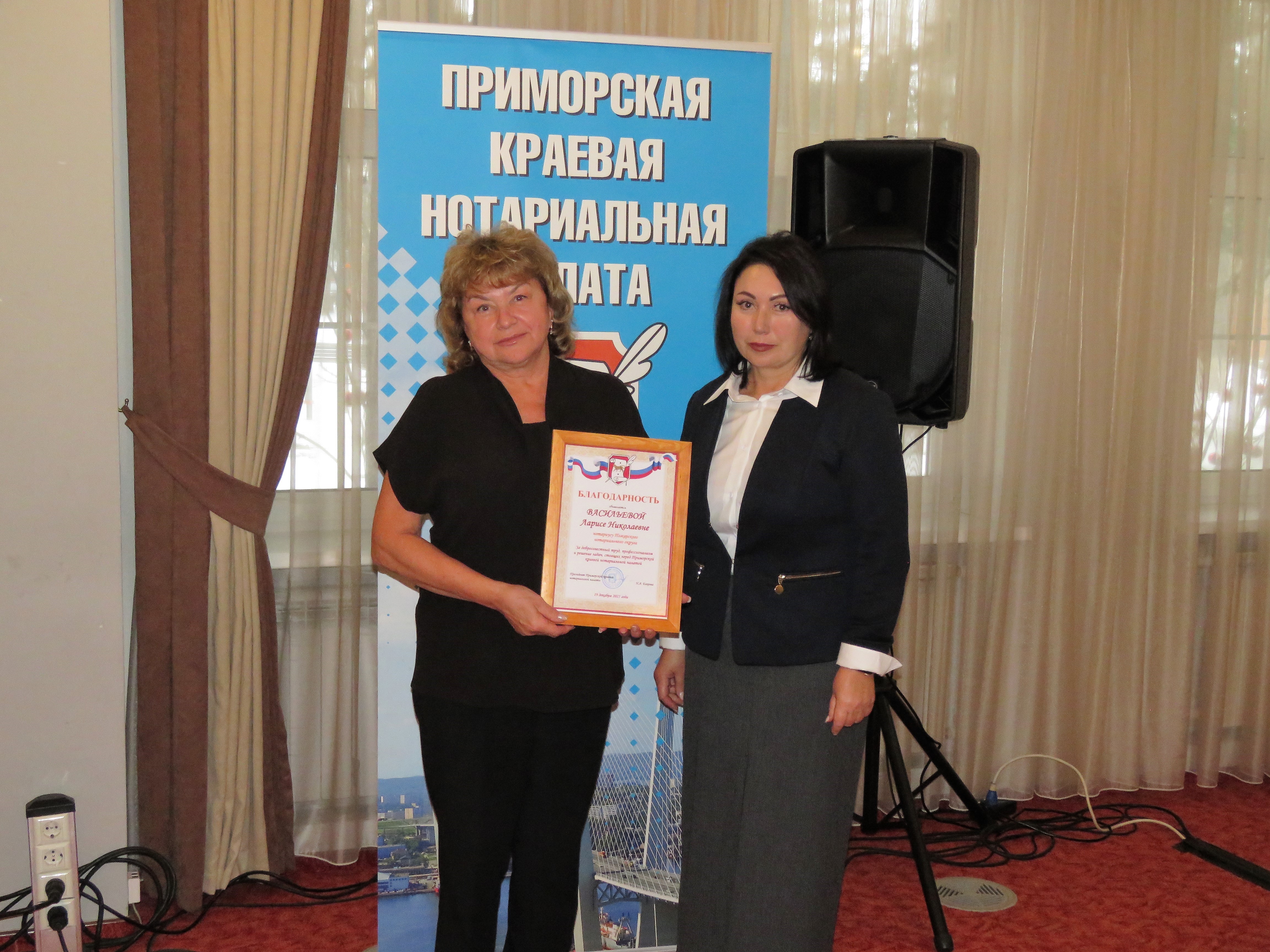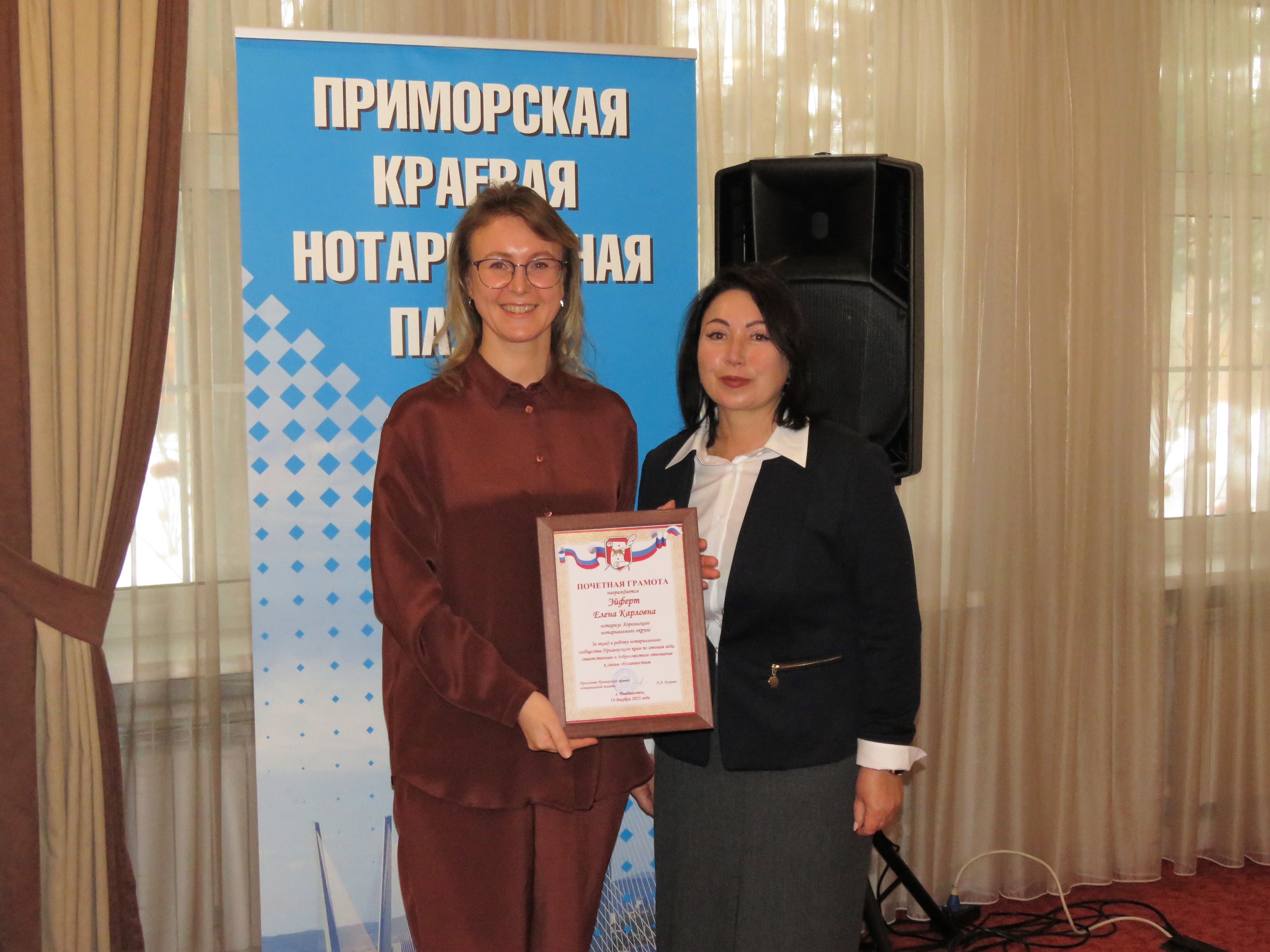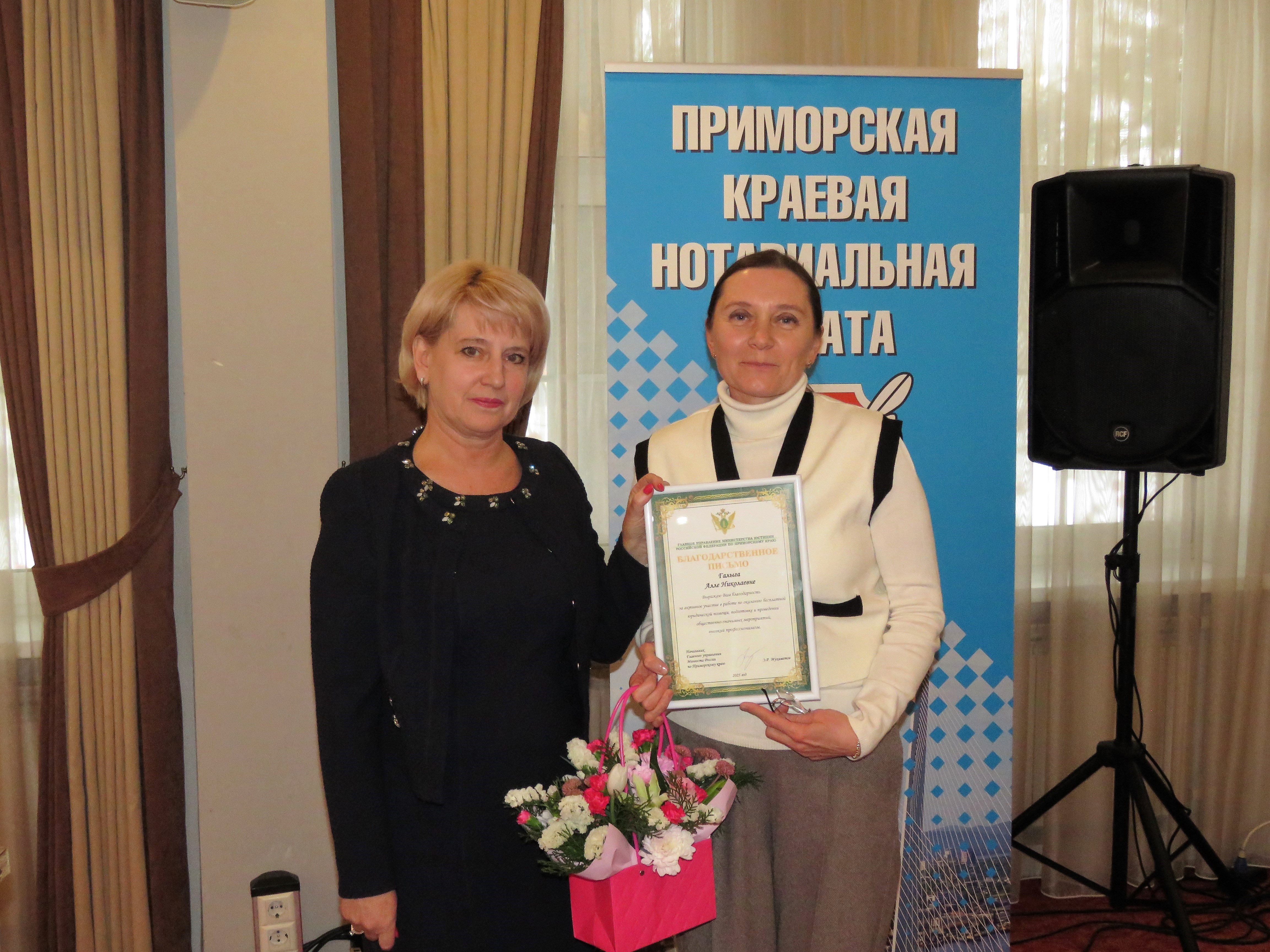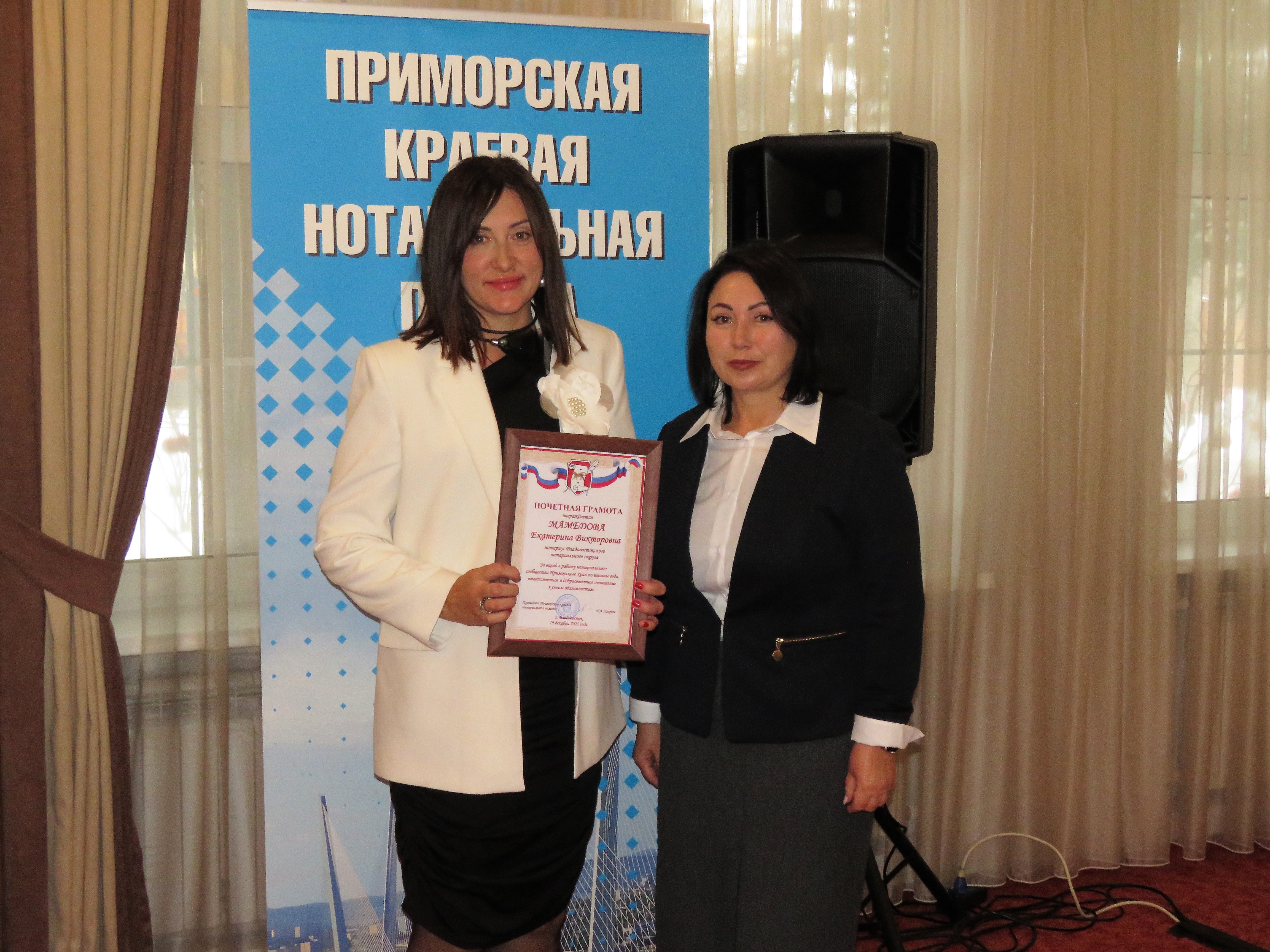 По окончании собрания, в соответствии с решением правления палаты ряд нотариусов края были отмечены наградами Федеральной нотариальной палаты, правительства Приморского края, Законодательного Собрания Приморского края и Приморской краевой нотариальной палаты. После официальной части собрания состоялся праздничный новогодний вечер.