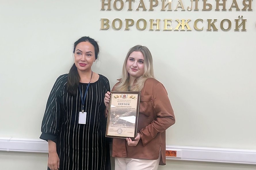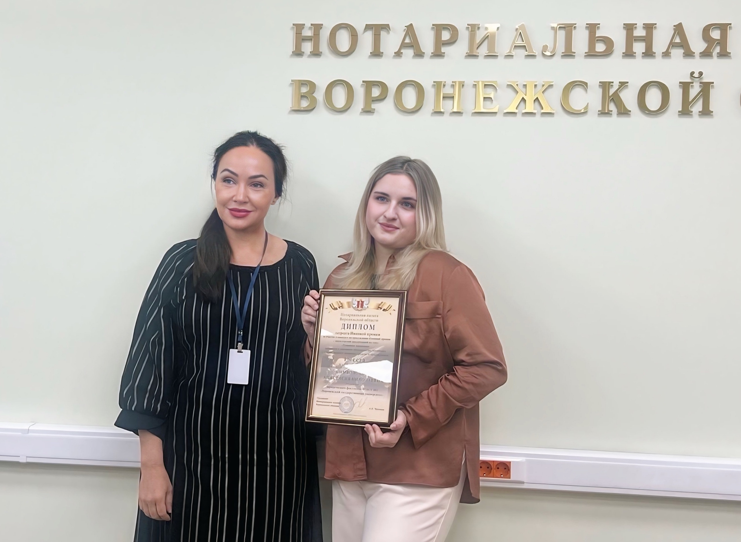 В Нотариальной палате Воронежской области состоялось торжественное вручение диплома лауреата именной премии. Президент палата Анна Чугунова вручила заслуженную награду студентке юридического факультета Воронежского государственного университета Анастасии Символоковой.