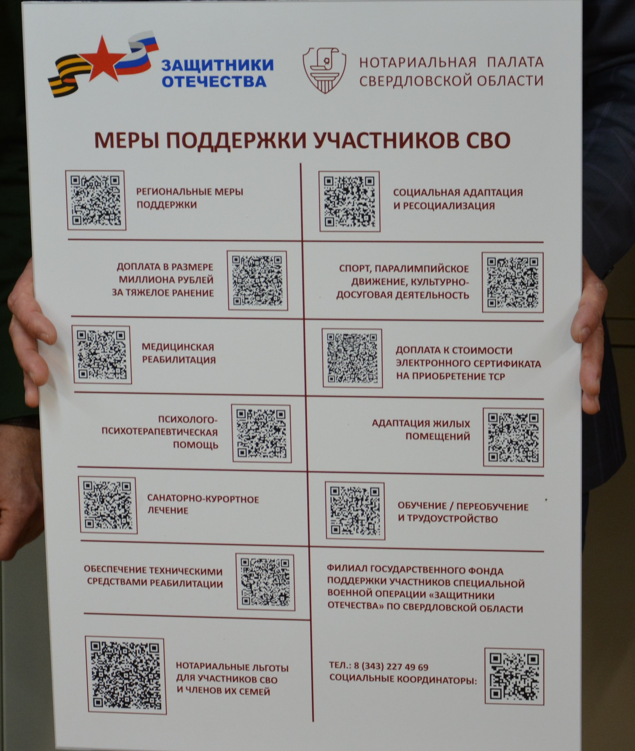 10 октября президент Нотариальной палаты Свердловской области Ирина Перевалова совместно с Уполномоченным по правам человека в Свердловской области Татьяной Мерзляковой и руководителем филиала Государственного фонда поддержки участников СВО «Защитники Отечества» Свердловская область Илдаром Якуповым посетили окружной военный клинический госпиталь в городе Екатеринбурге, где проходят лечение военнослужащие — участники специальной военной операции.