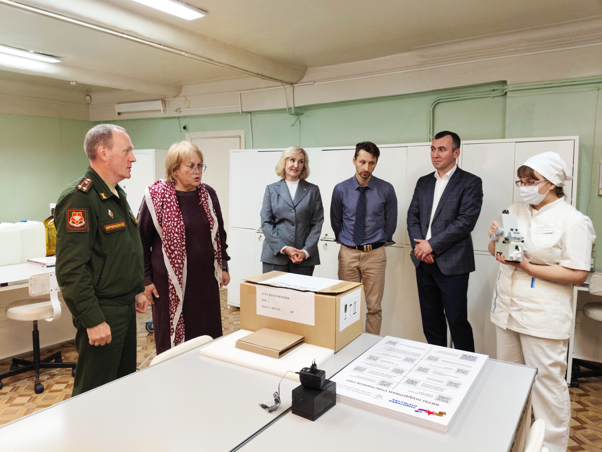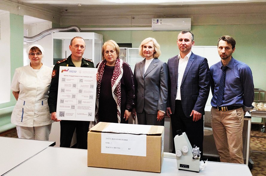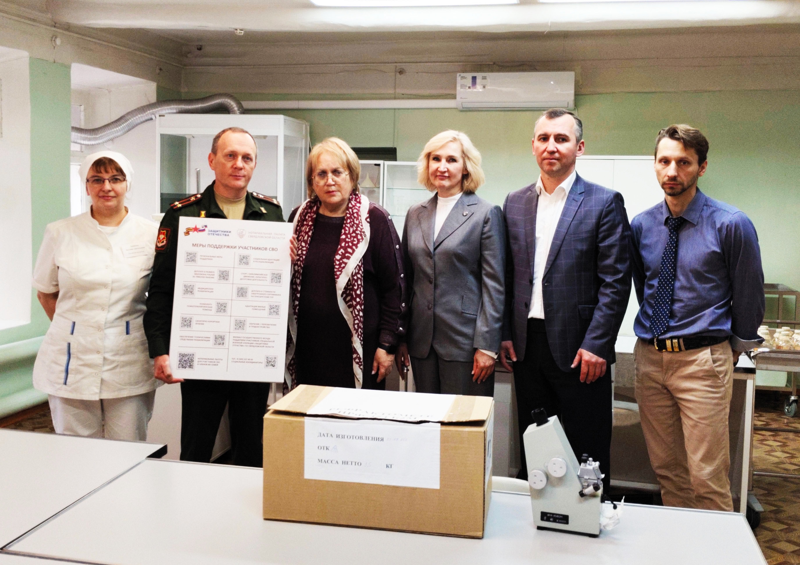 Нотариальной палатой в дар госпиталю было передано медицинское оборудование, предназначенное для контроля качества лекарственных средств, а также специально изготовленные стенды с информацией о льготах, которые предоставляют нотариальная палата и Фонд «Защитники Отечества» участникам СВО и членам их семей.