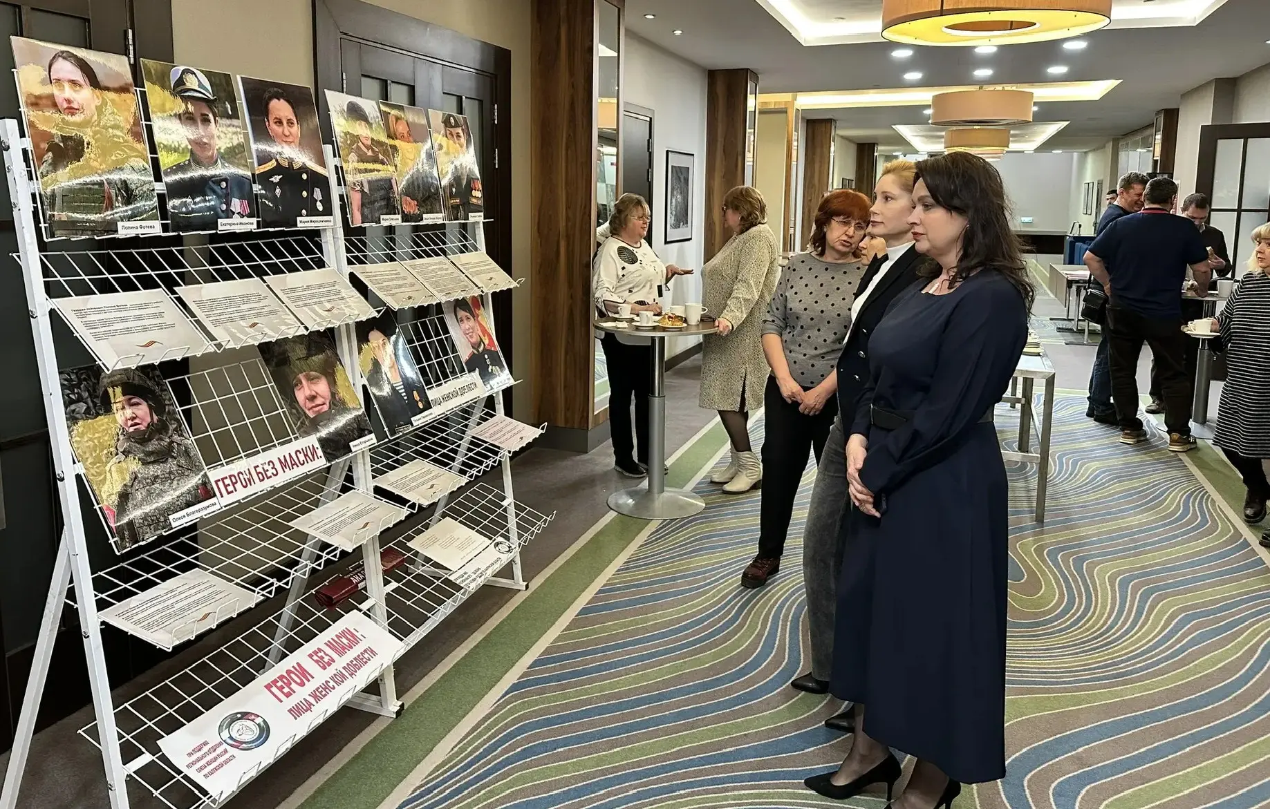 Перед собранием нотариусы ознакомились с выставкой «Герои без маски: лица женской доблести», посвященной женщинам, чьи судьбы переплелись с событиями специальной военной операции.