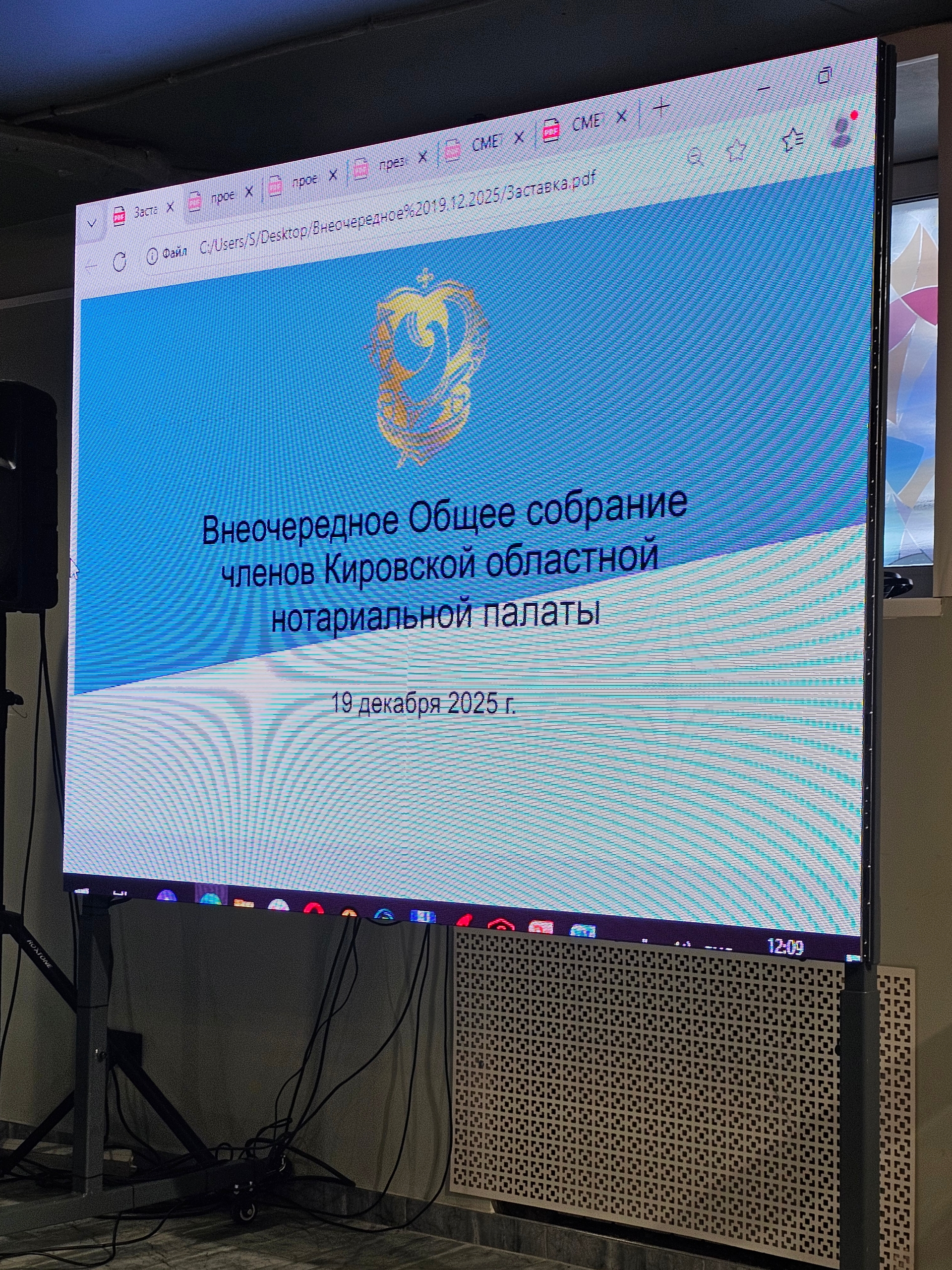 19 декабря состоялось внеочередное общее собрание членов Кировской областной нотариальной палаты. Нотариусы области подвели итоги уходящего года, утвердили изменения в Устав КОНП, приоритетные направления деятельности палаты на 2026-2031 гг, рассмотрели прочие вопросы.