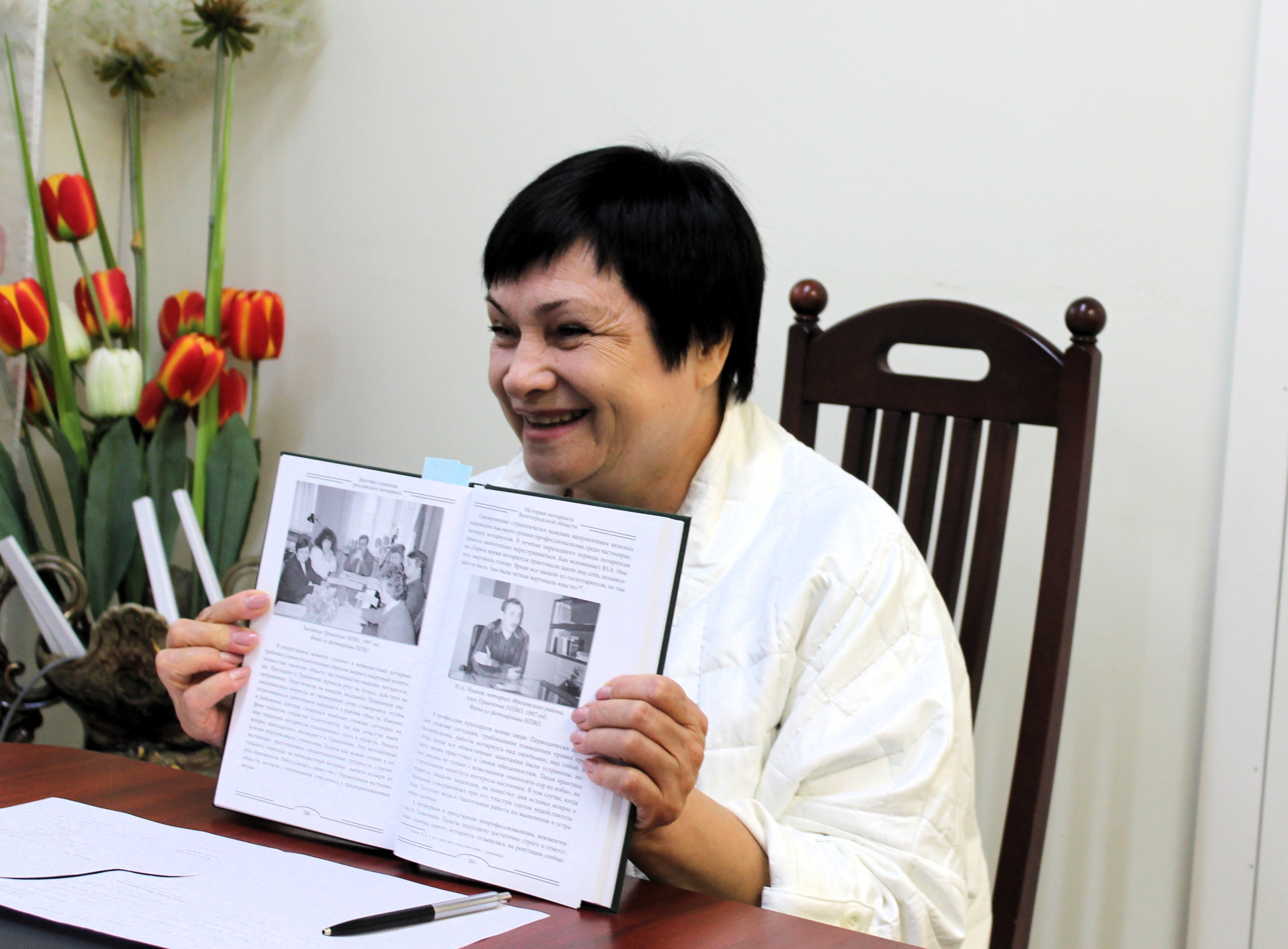 Председатель Совета ветеранов Ирина Перепелицына, стоявшая у истоков создания небюджетного нотариата Волгоградской области, поделилась с молодежью воспоминаниями о том, как жили и работали государственные нотариусы, как строили новый нотариат. Личные воспоминания Ирина Сергеевна дополнила примерами и фото из книги «История нотариата Волгоградской области».