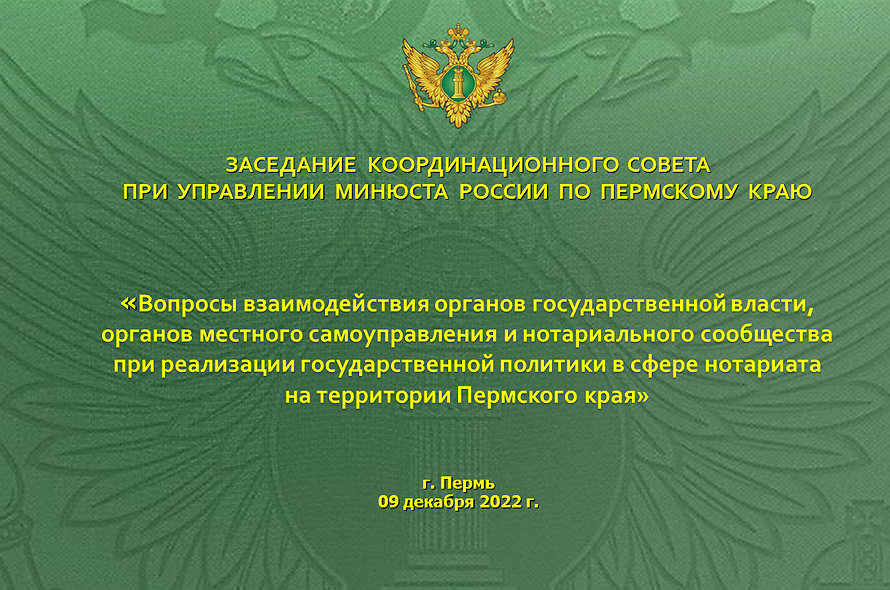 9 декабря на базе Нотариальной палаты Пермского края прошел Координационный совет при Управлении Министерства юстиции Российской Федерации по Пермскому краю, посвященный вопросам взаимодействия органов власти и нотариального сообщества.