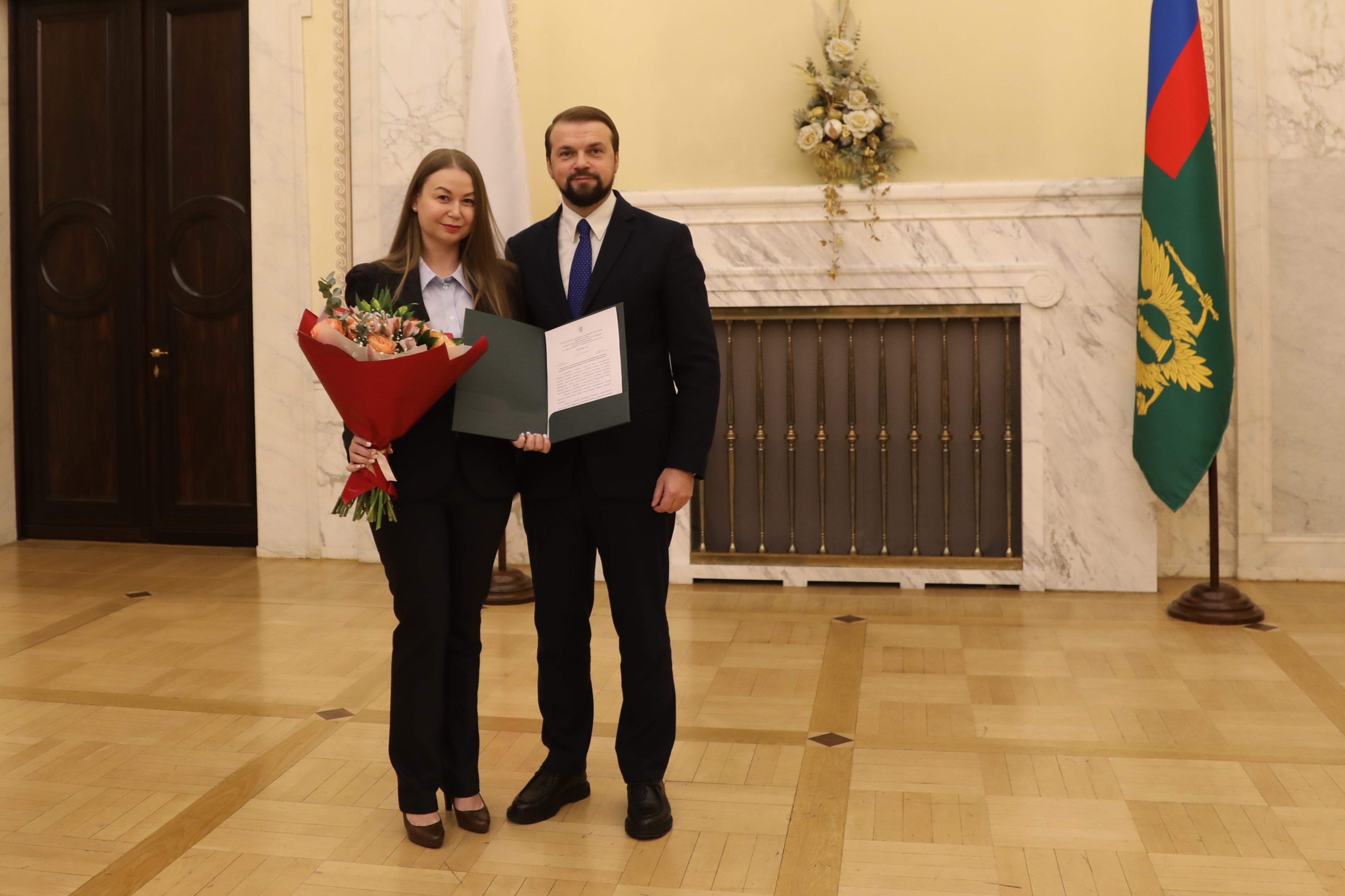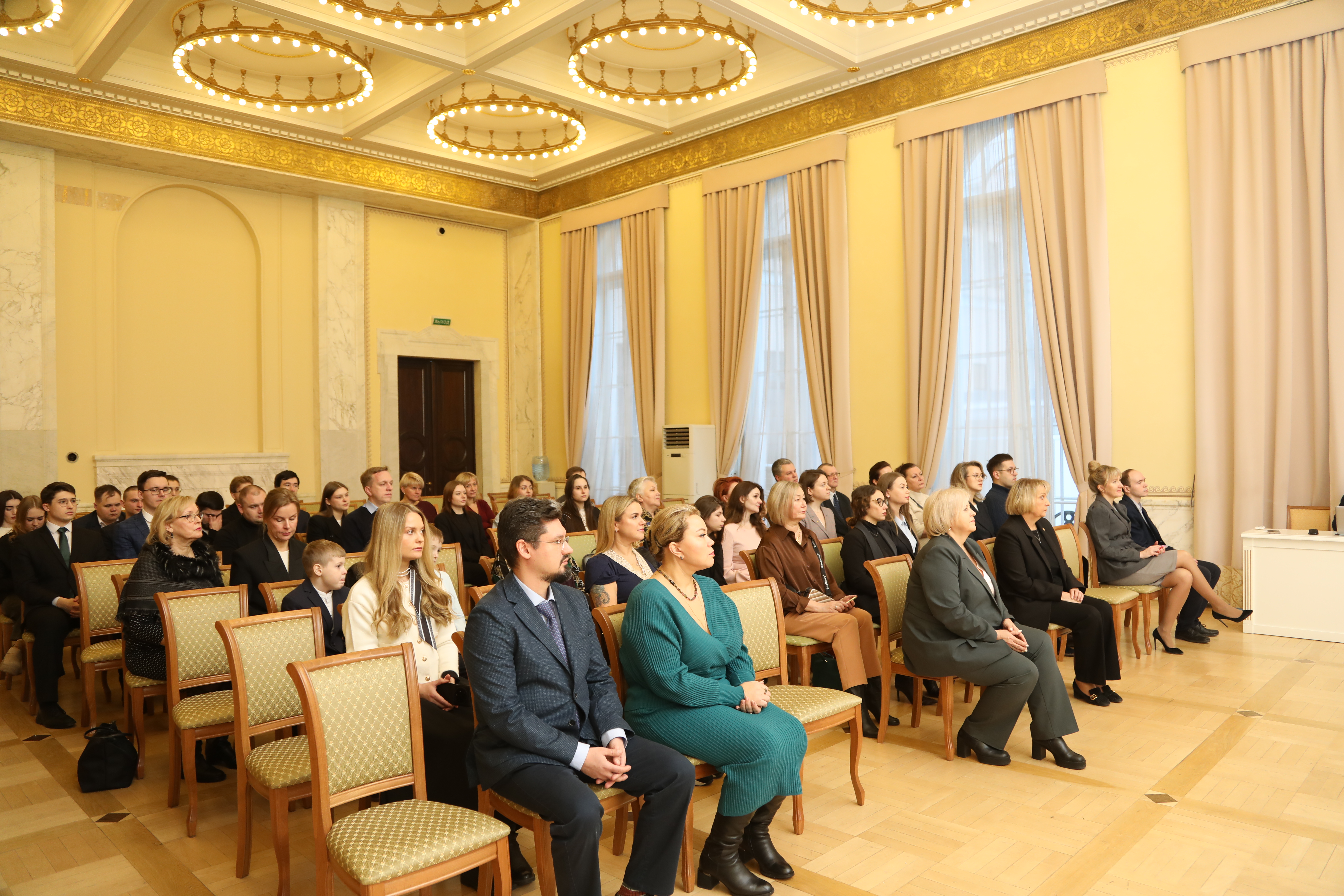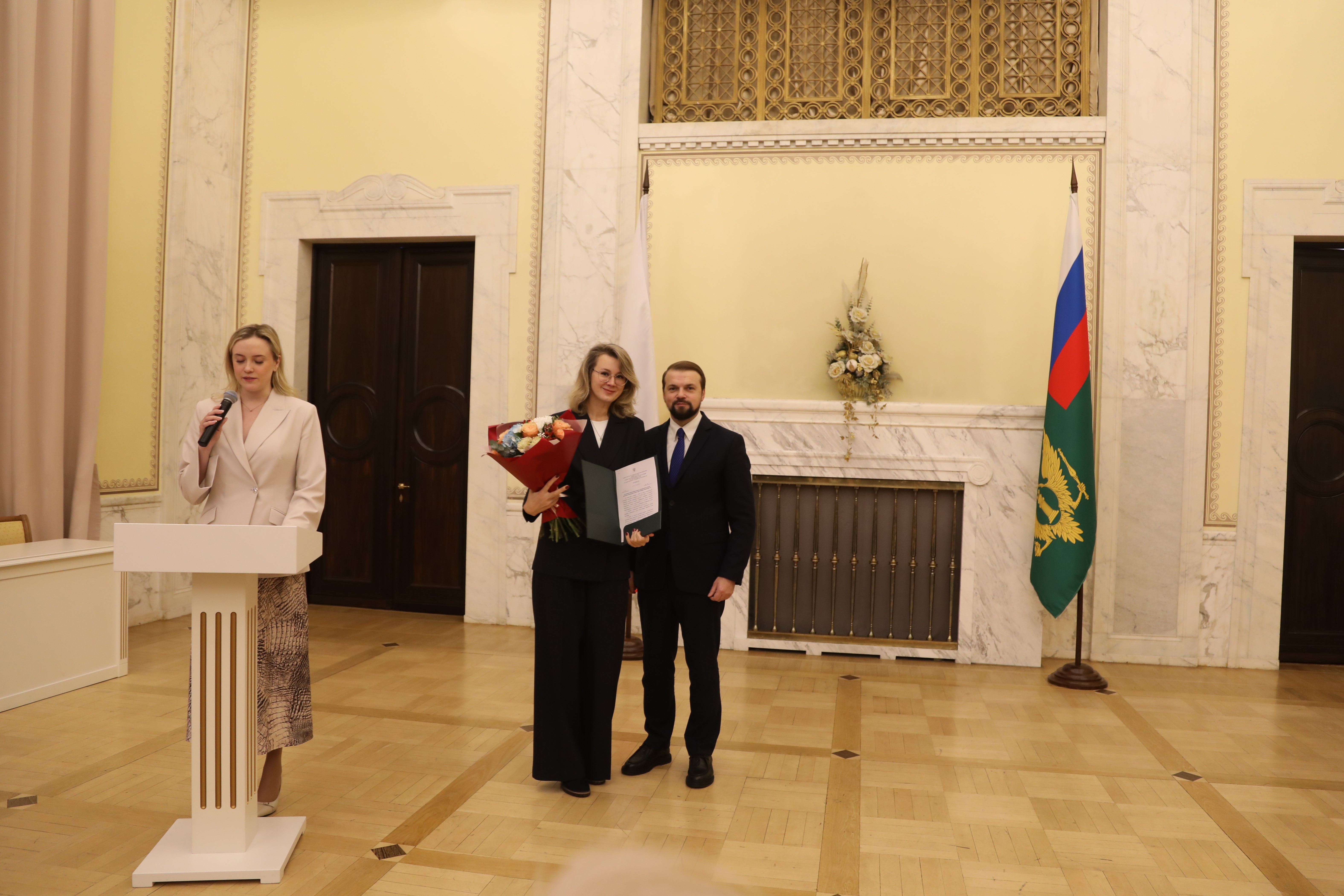 Молодых специалистов чествовали в Главном управлении Минюста России по Санкт-Петербургу и Ленобласти. В церемонии приняли участие глава ведомства Евгений Орловский, его заместитель Татьяна Васильева и начальник отдела по вопросам адвокатуры, нотариата, государственной регистрации актов гражданского состояния Наталия Жилкина.