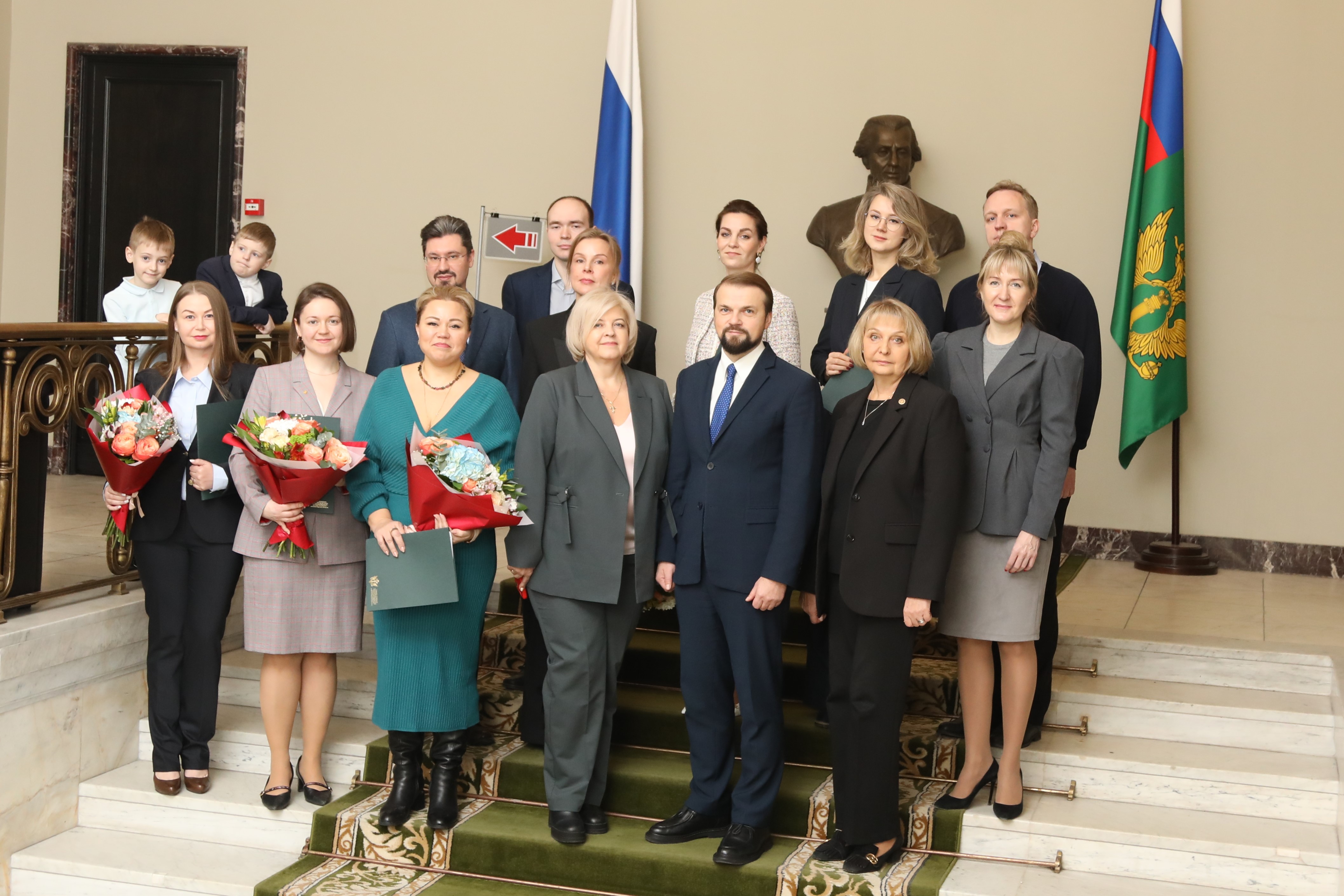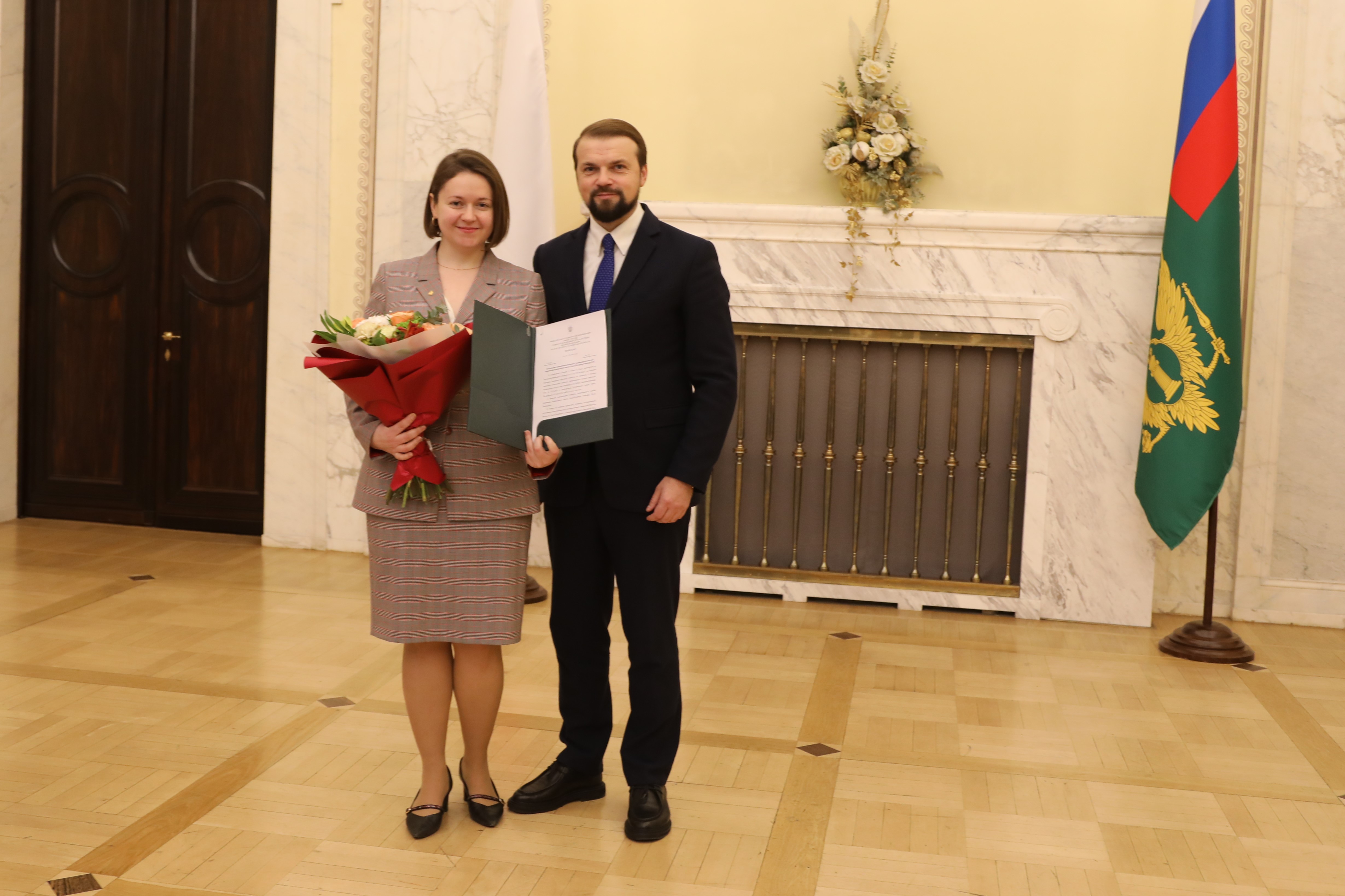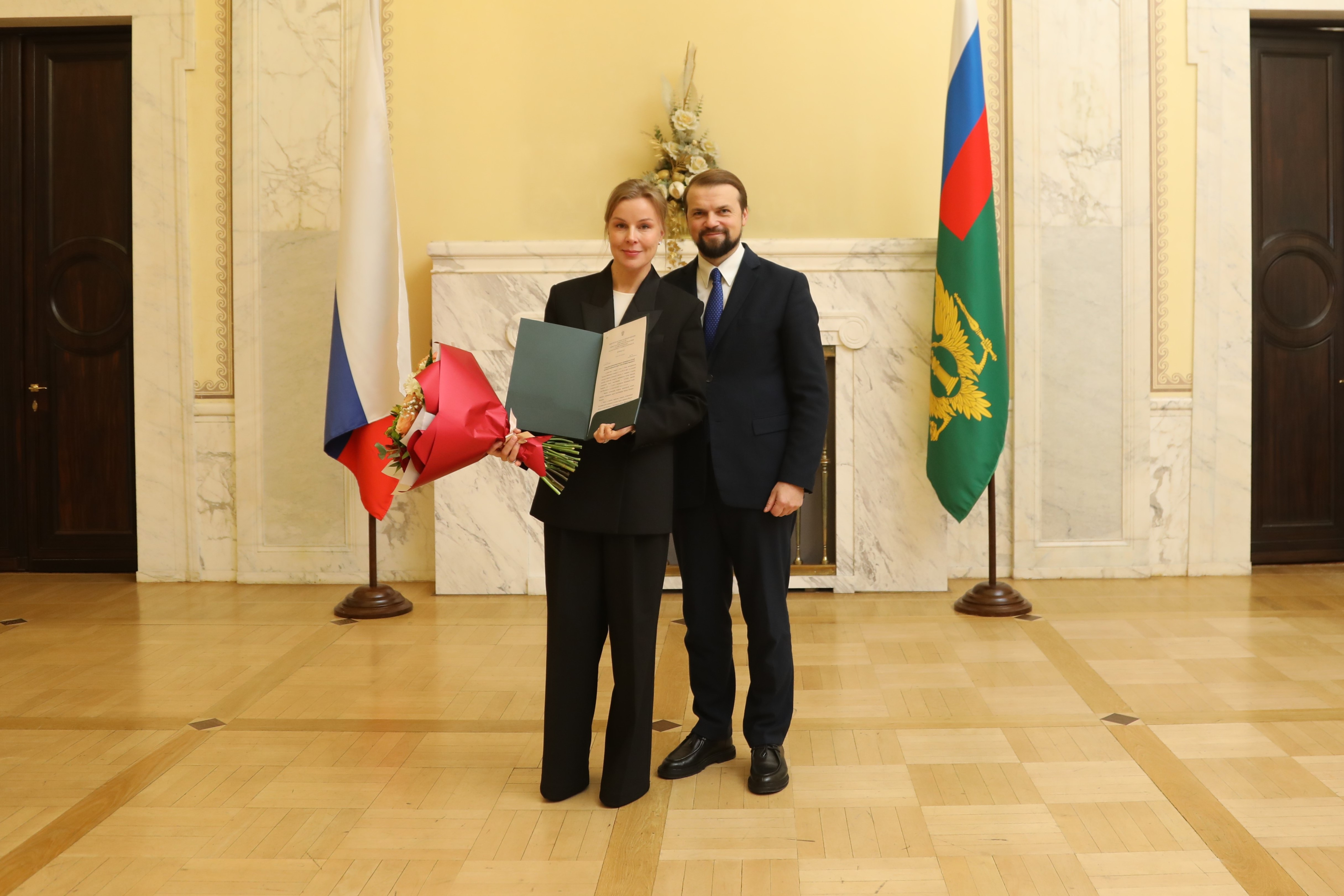 Молодых специалистов чествовали в Главном управлении Минюста России по Санкт-Петербургу и Ленобласти. В церемонии приняли участие глава ведомства Евгений Орловский, его заместитель Татьяна Васильева и начальник отдела по вопросам адвокатуры, нотариата, государственной регистрации актов гражданского состояния Наталия Жилкина.