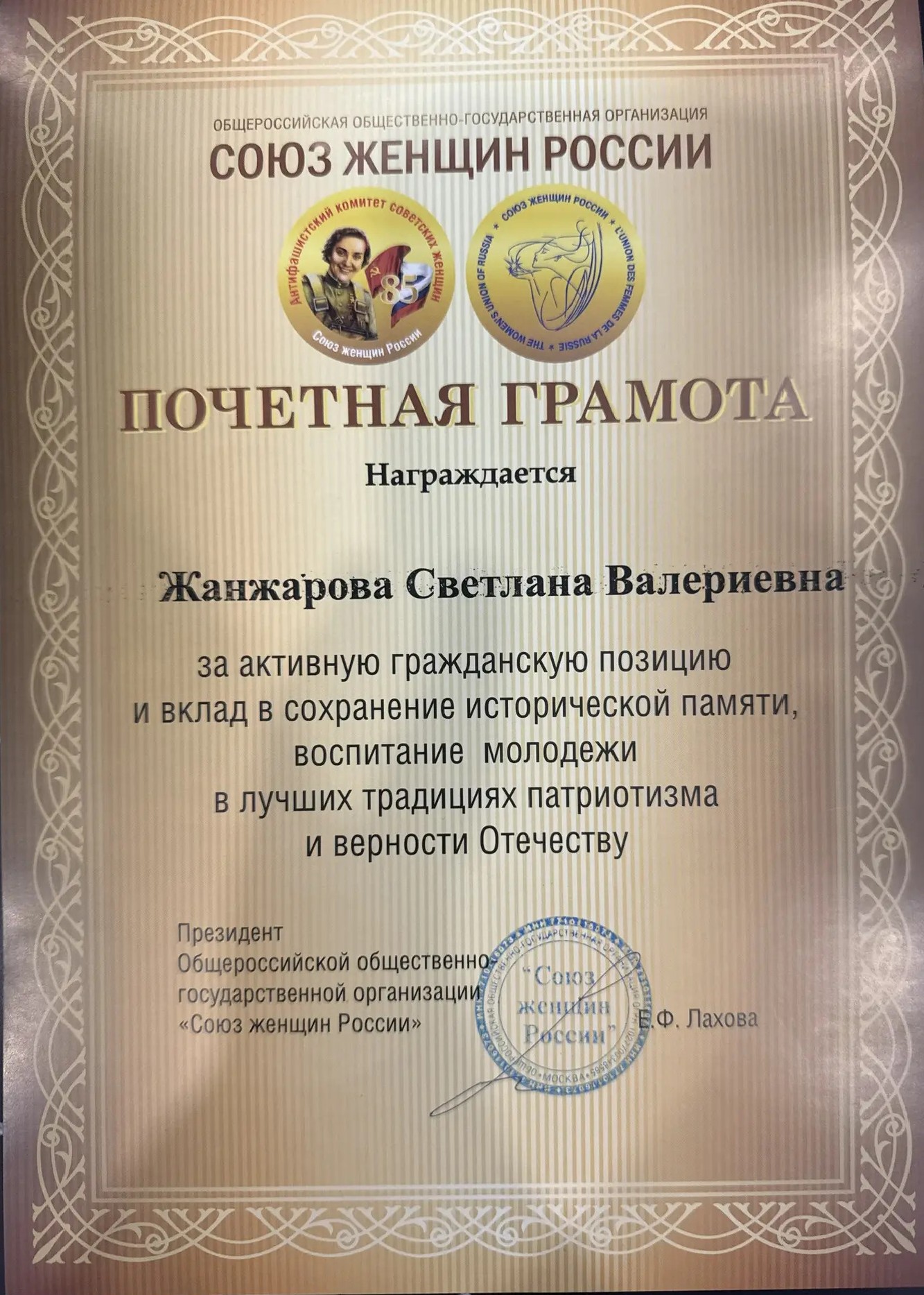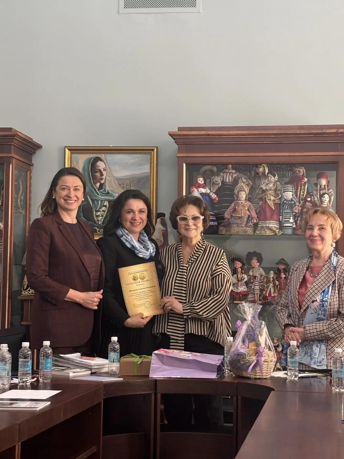 19 марта президент Калужской областной нотариальной палаты Светлана Жанжарова посетила центральный офис Общероссийской общественно-государственной организации «Союз женщин России» совместно с делегацией Калужского регионального отделения Союза женщин России. Ключевыми событиями стали встреча с руководством организации и торжественное вручение высокой награды.